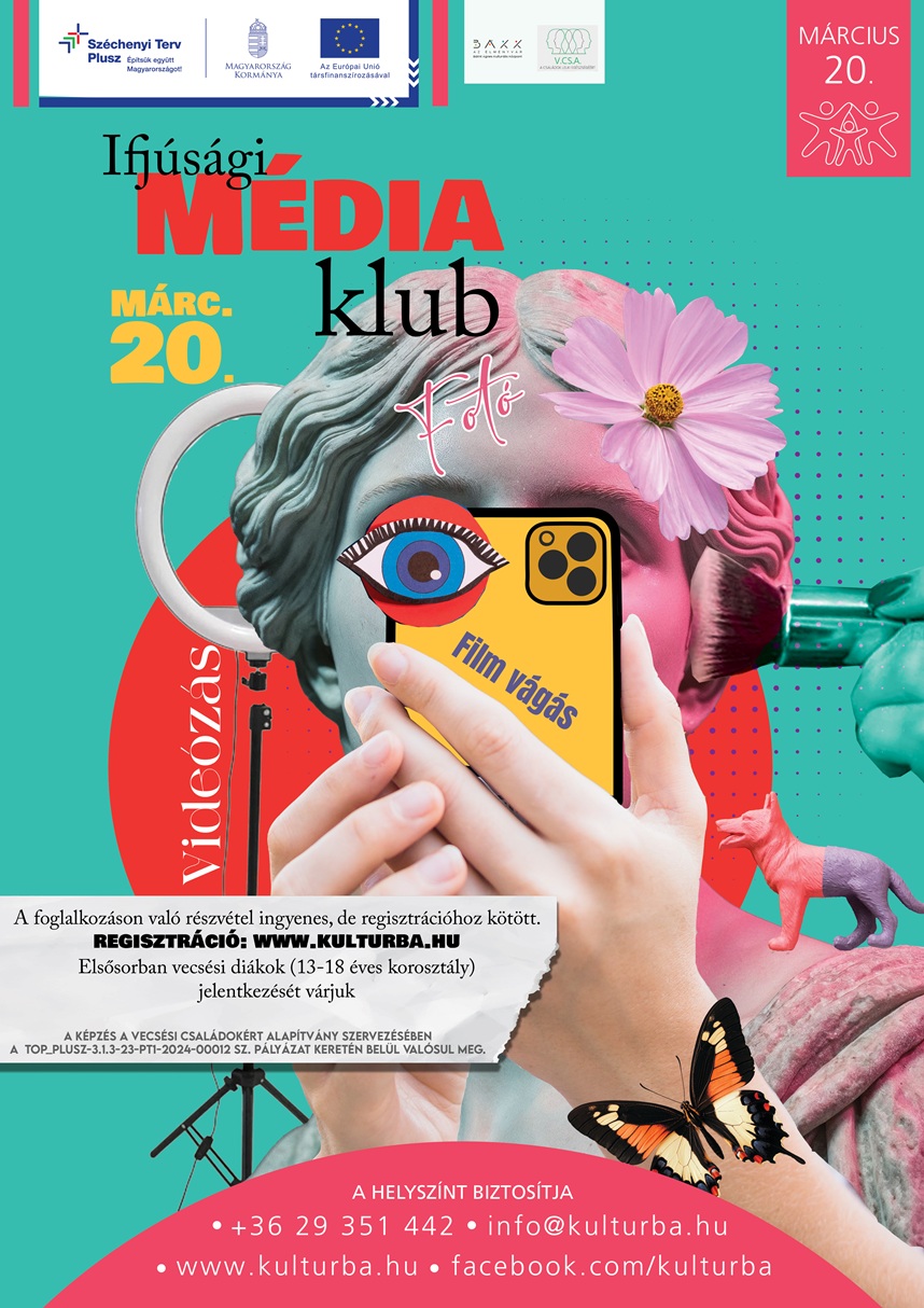 Ifjúsági Média Klub indul a Bálint Ágnes Kulturális Központban elsősorban vecsési 13-18 éves korosztályú diákok számára. Ez a klub egy nyolc alkalmas, gyakorlatorientált foglalkozássorozat, ahol a résztvevő diákok betekintést nyerhetnek a média és a filmkészítés világába.
