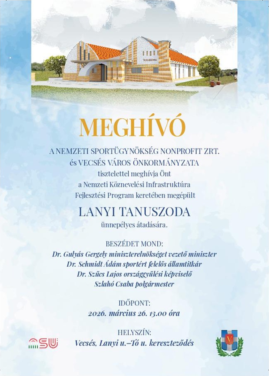 2026. március 26-án lesz a Lanyi Tanuszoda ünnepélyes átadása. Az eseményen beszédet mond Dr. Gulyás Gergely miniszterelnökséget vezető miniszter, Dr. Schmidt Ádám sportért felelős államtitkár, Dr. Szűcs Lajos országgyűlési képviselő és Szlahó Csaba polgármester.
