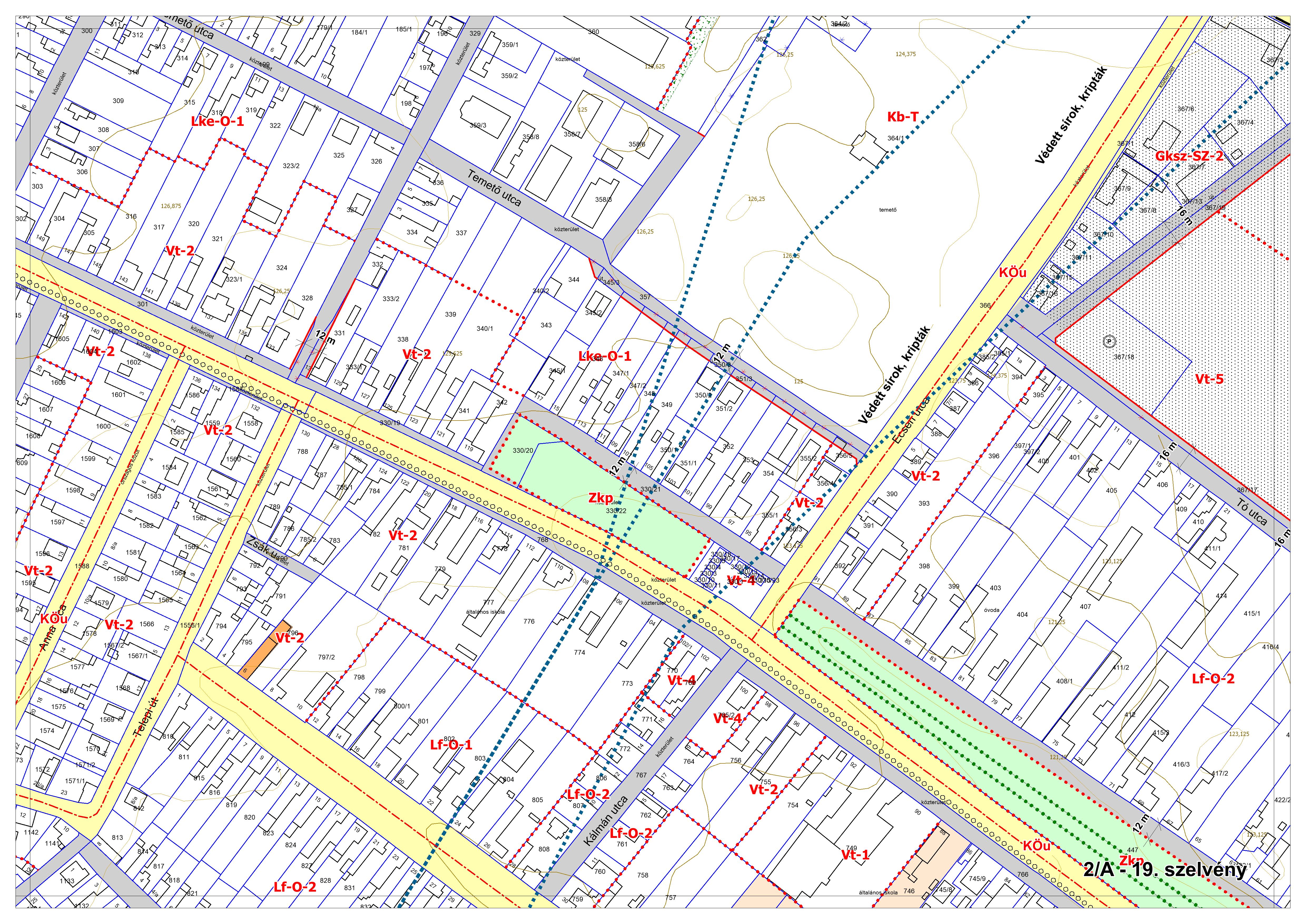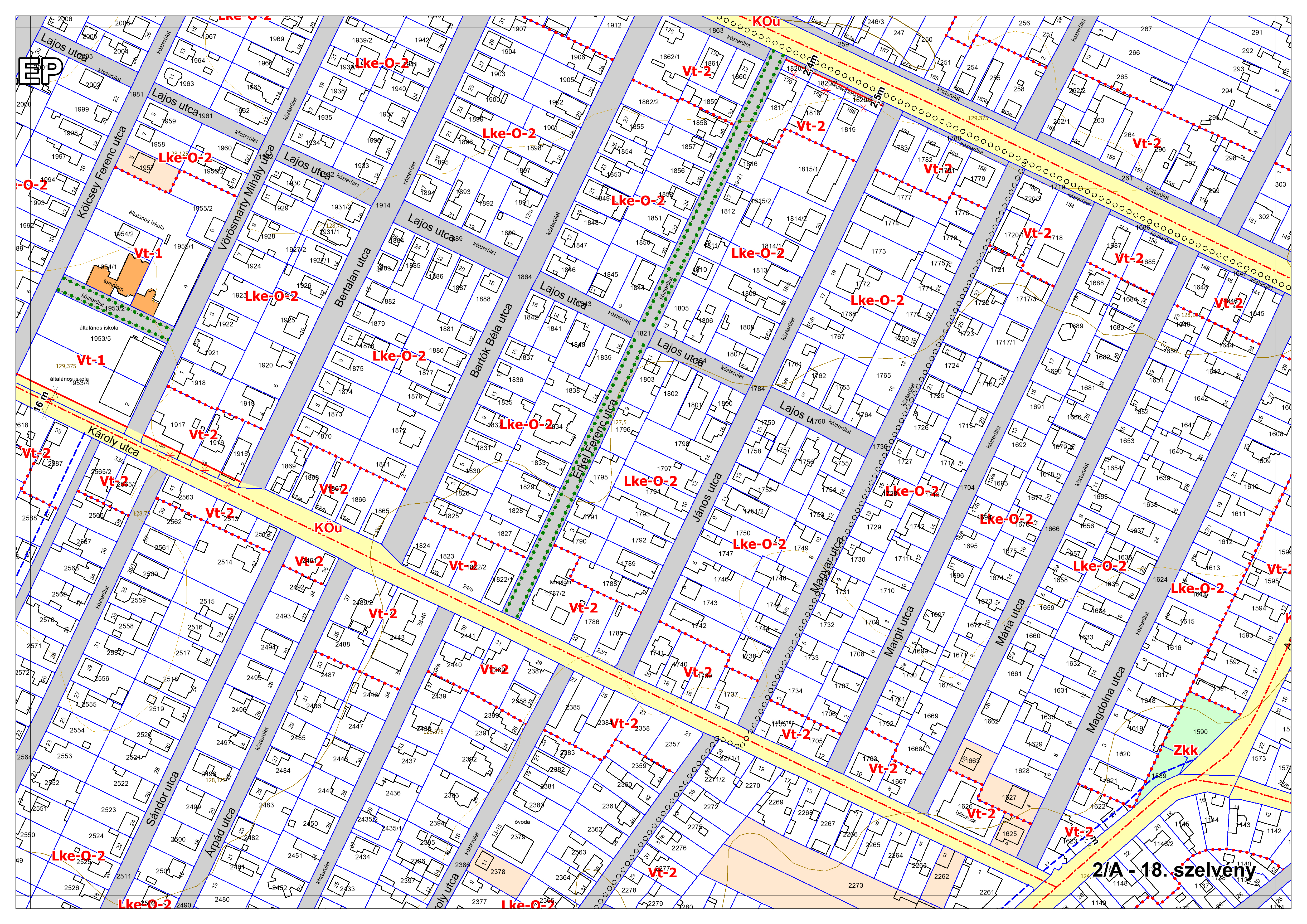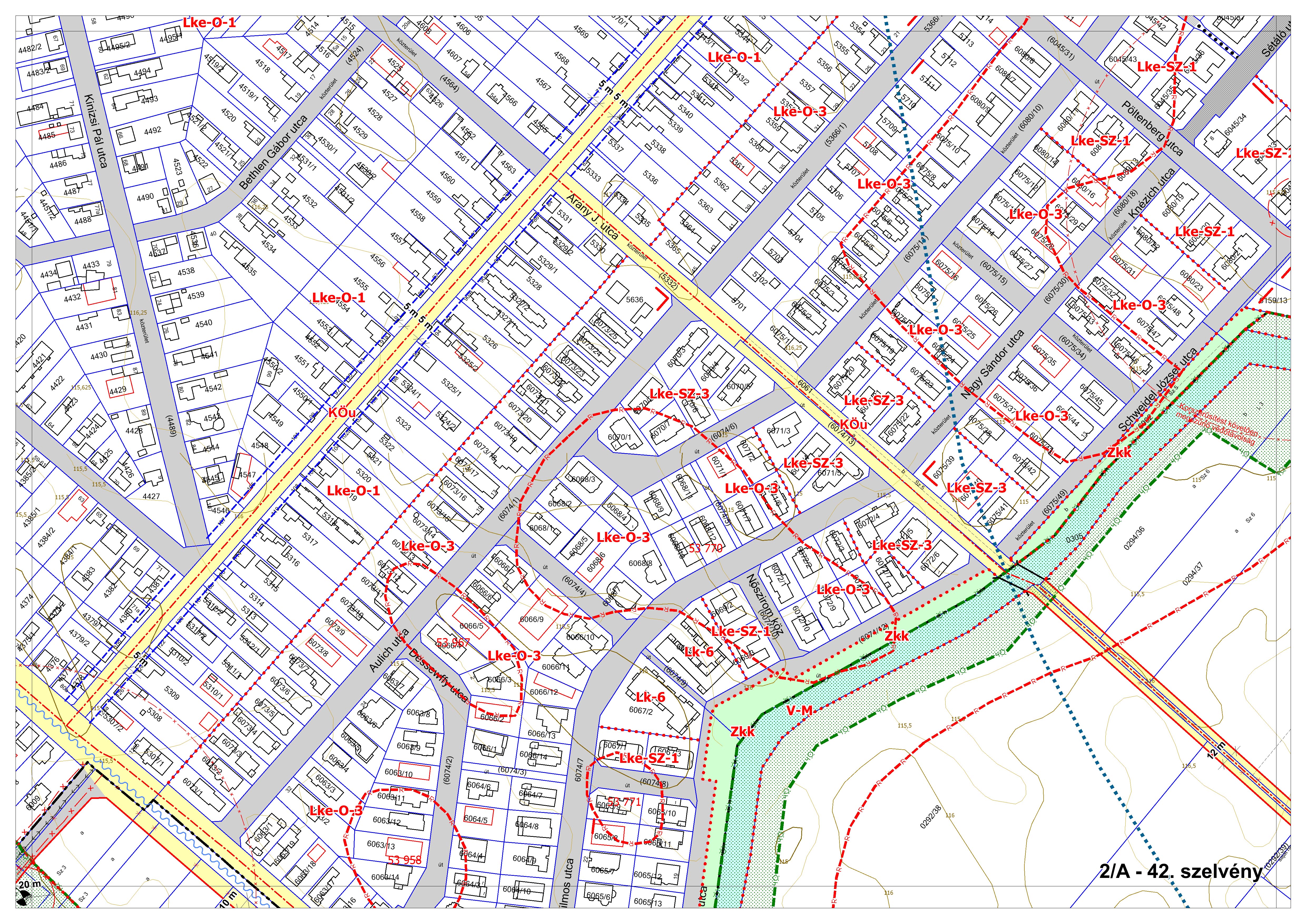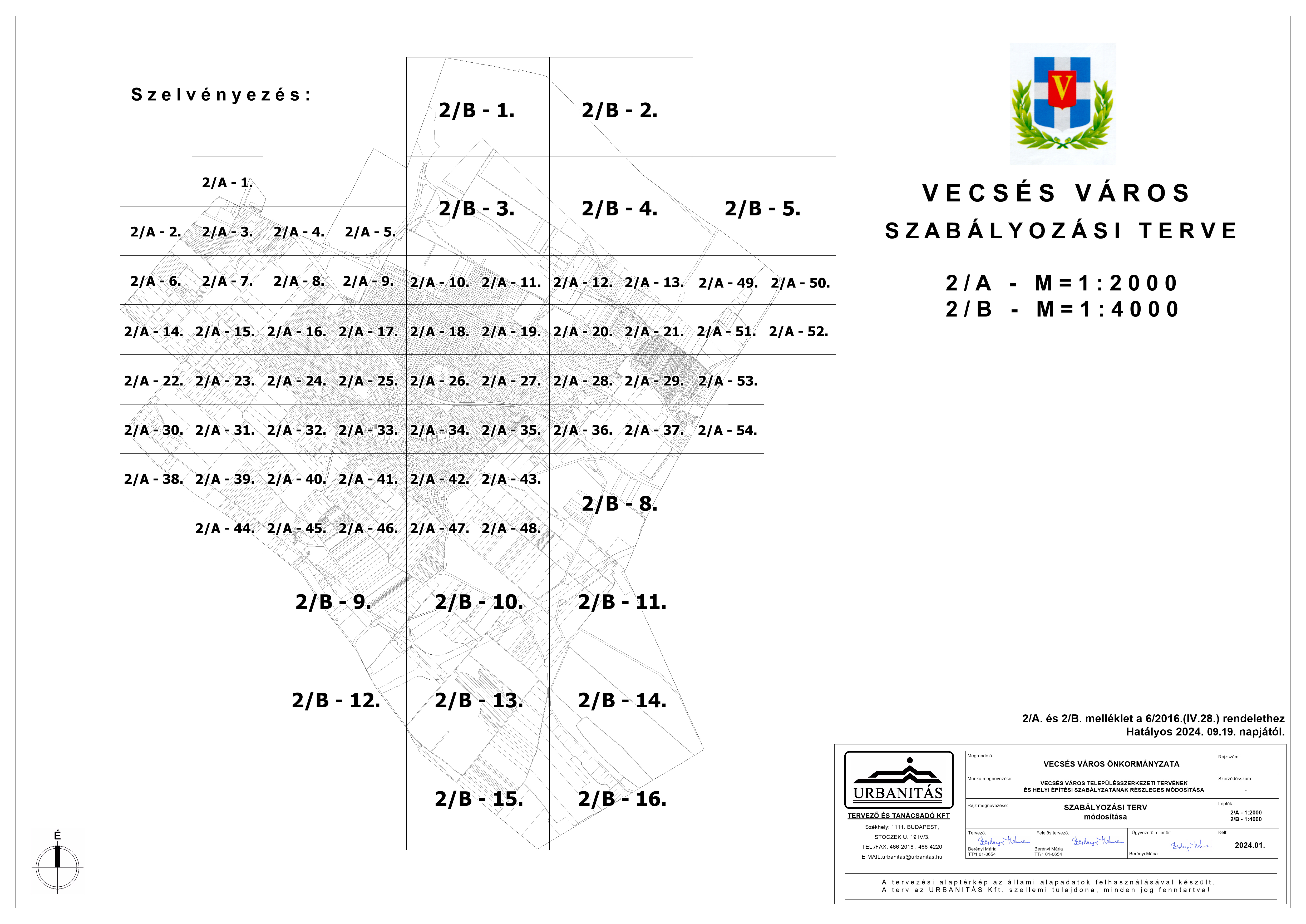 2/A. melléklet: a Szabályozási Terv jellemzően a belterületi szelvényei M=1:2000 méretarányban, 2/A-1.-től 2/A-48. tartó sorszámozással