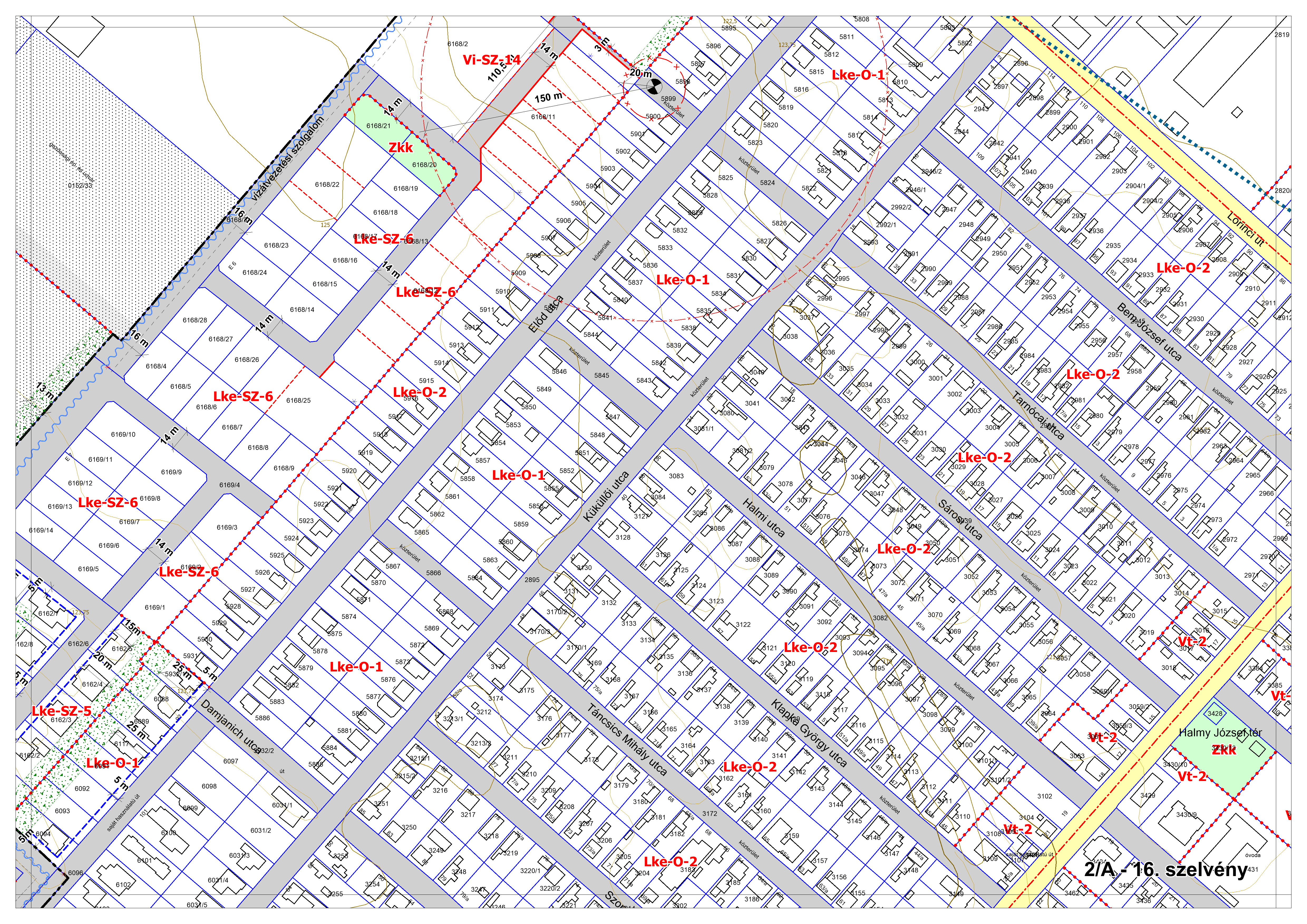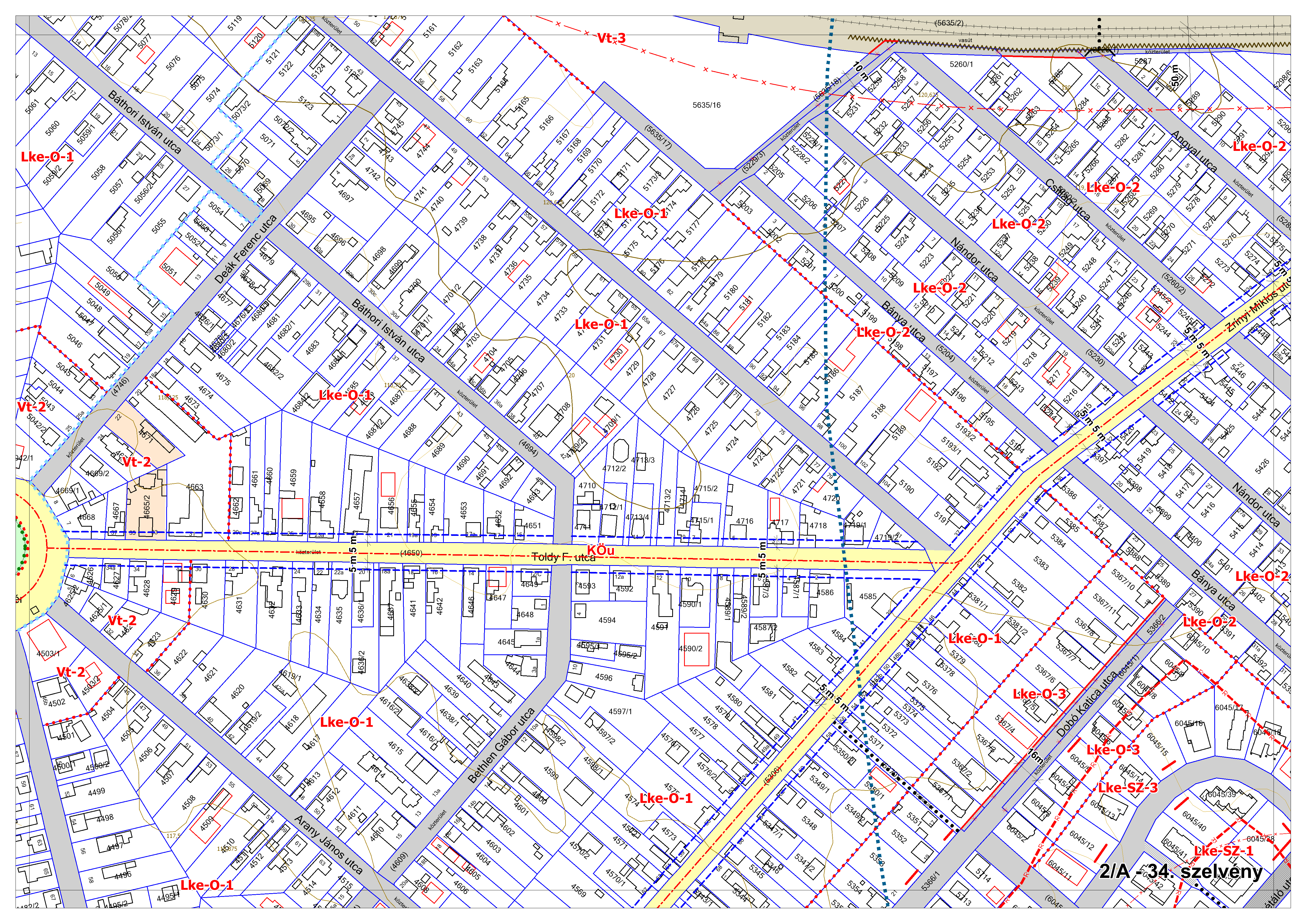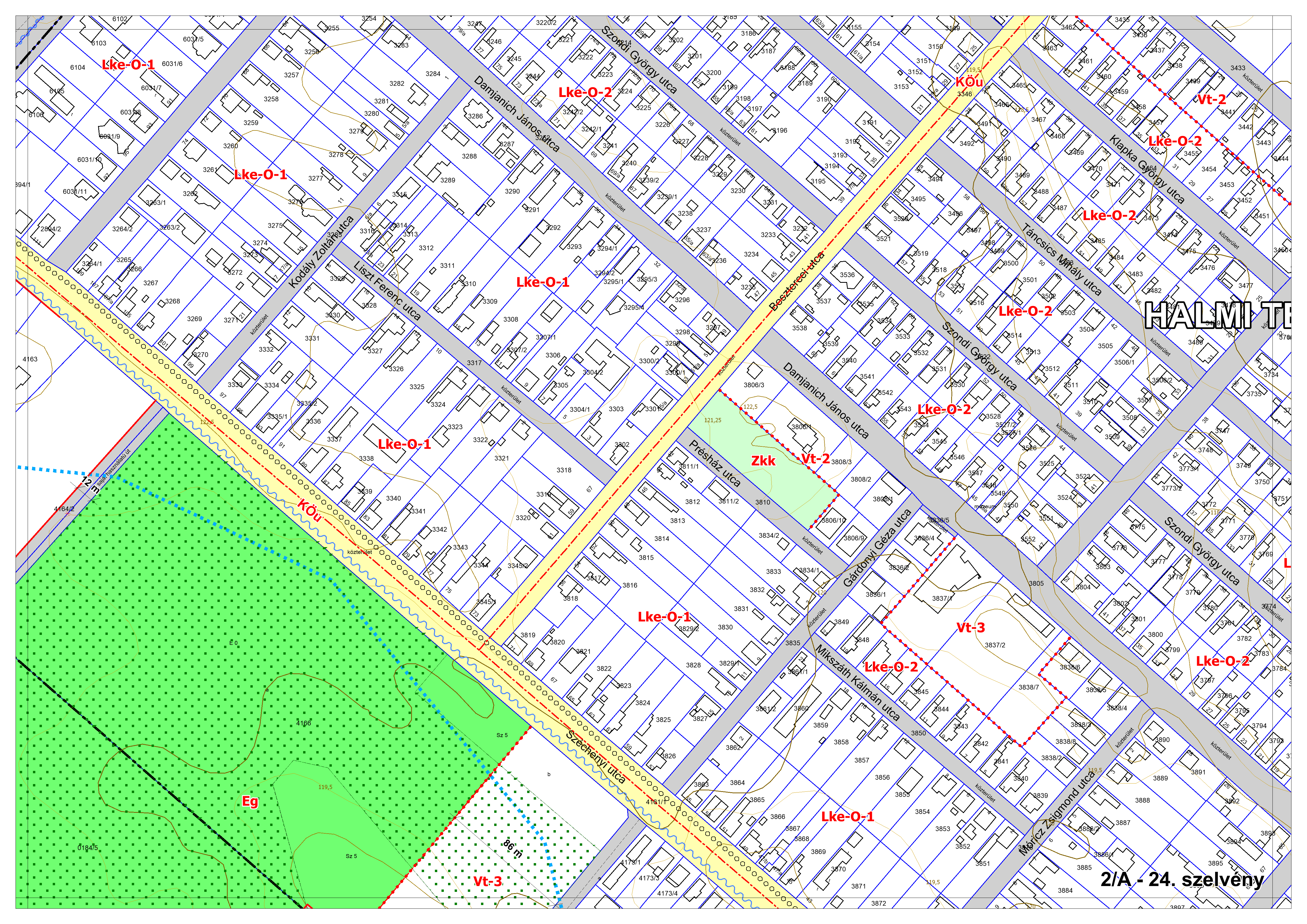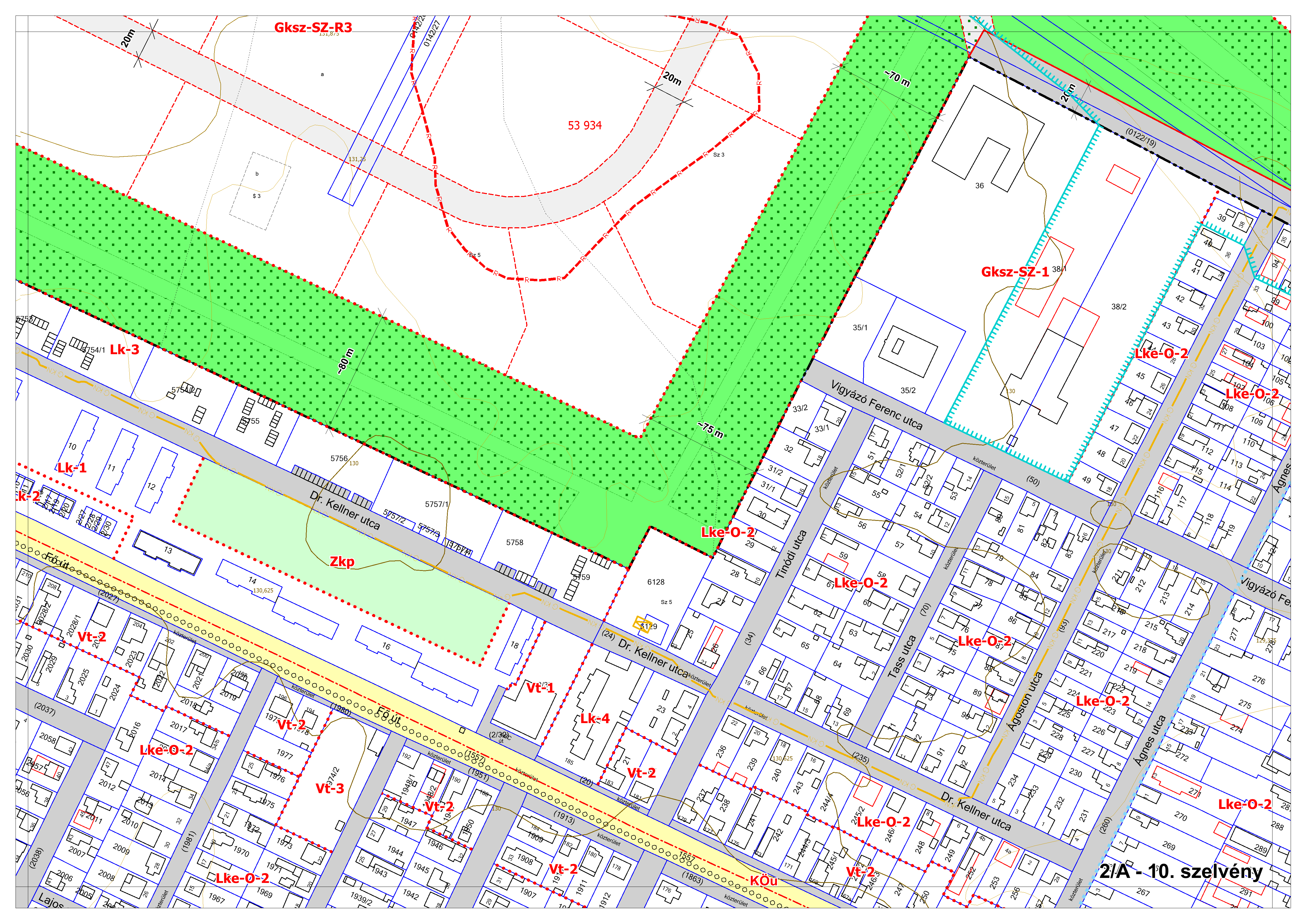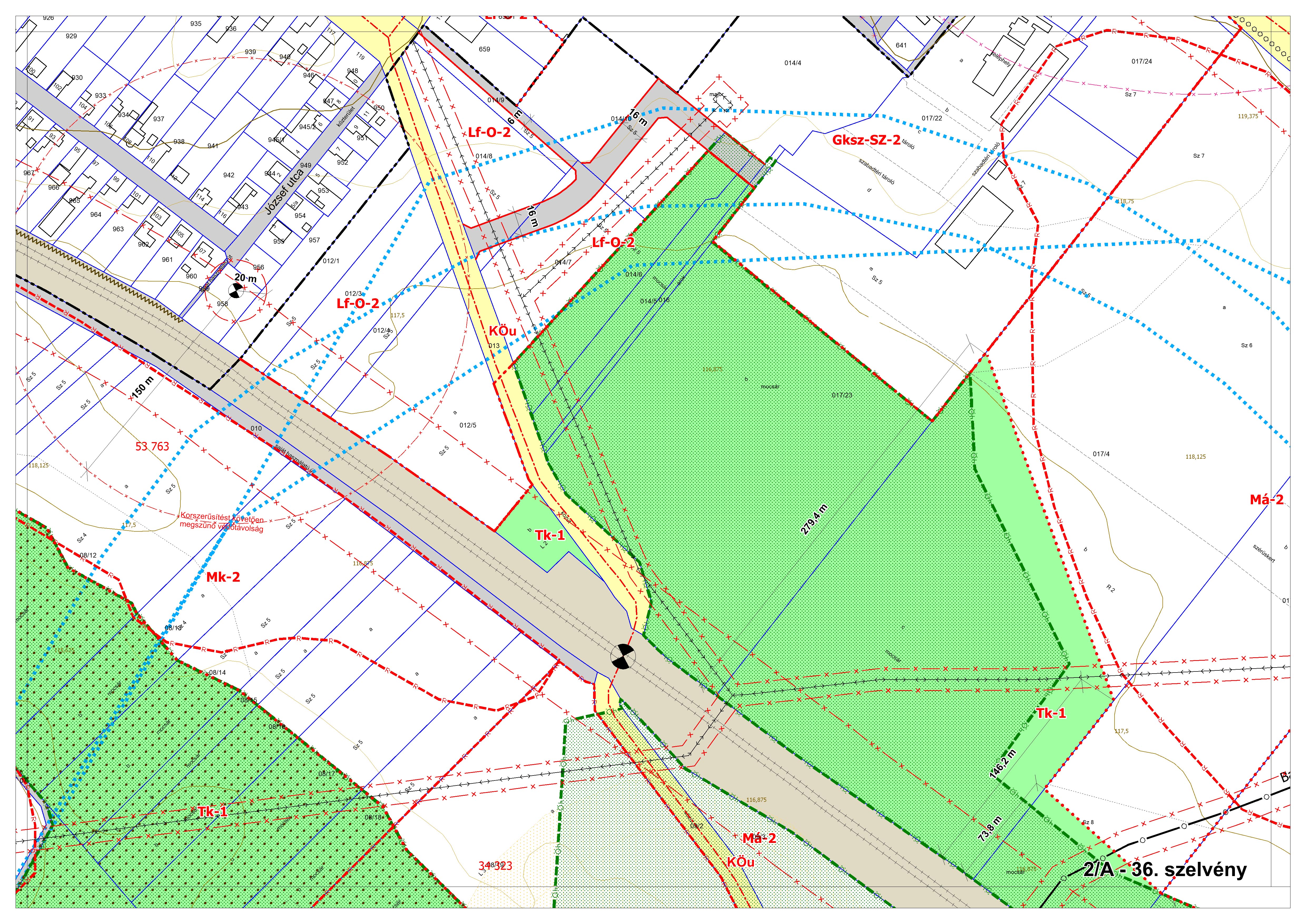 2/A. melléklet: a Szabályozási Terv jellemzően a belterületi szelvényei M=1:2000 méretarányban, 2/A-1.-től 2/A-48. tartó sorszámozással