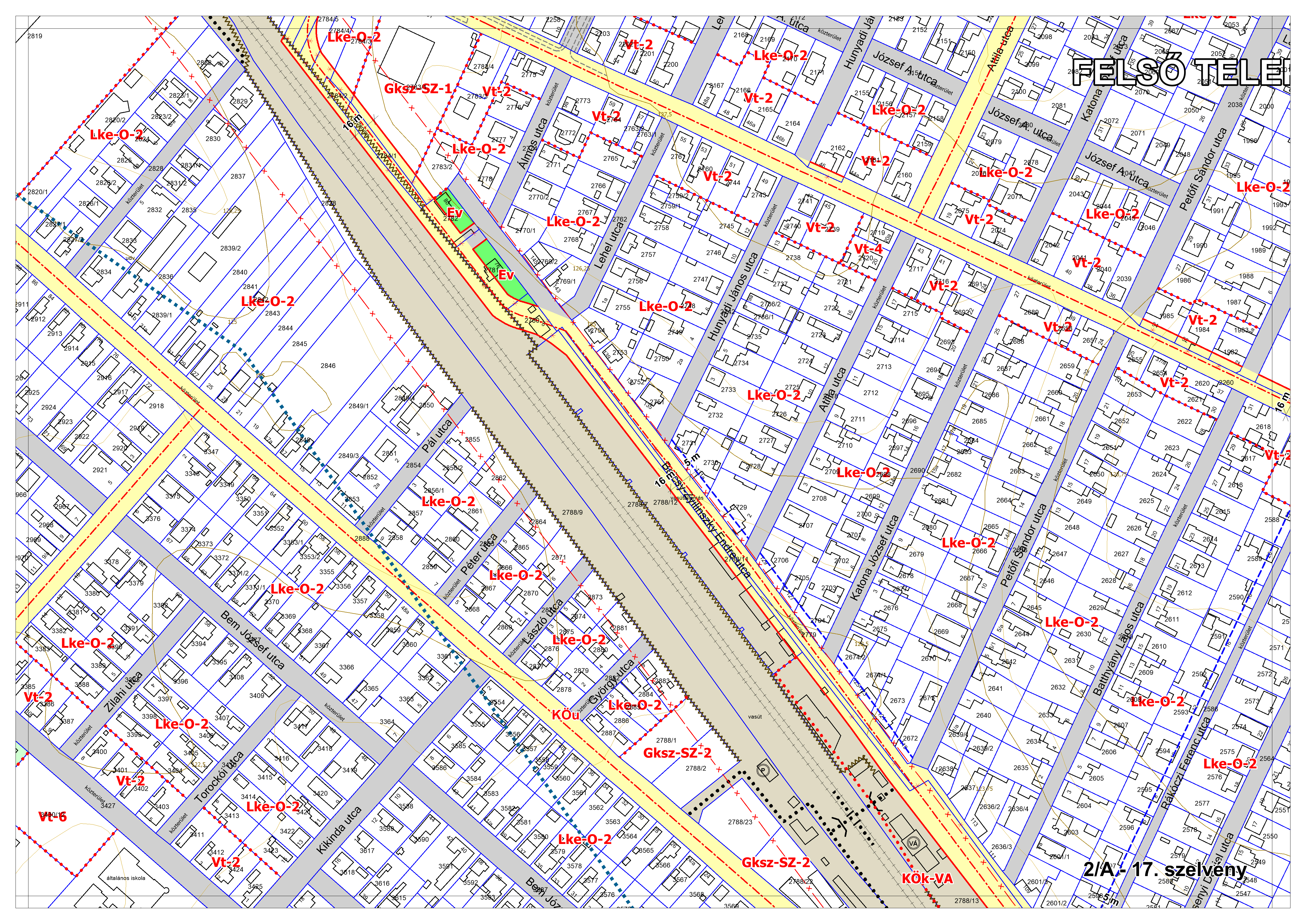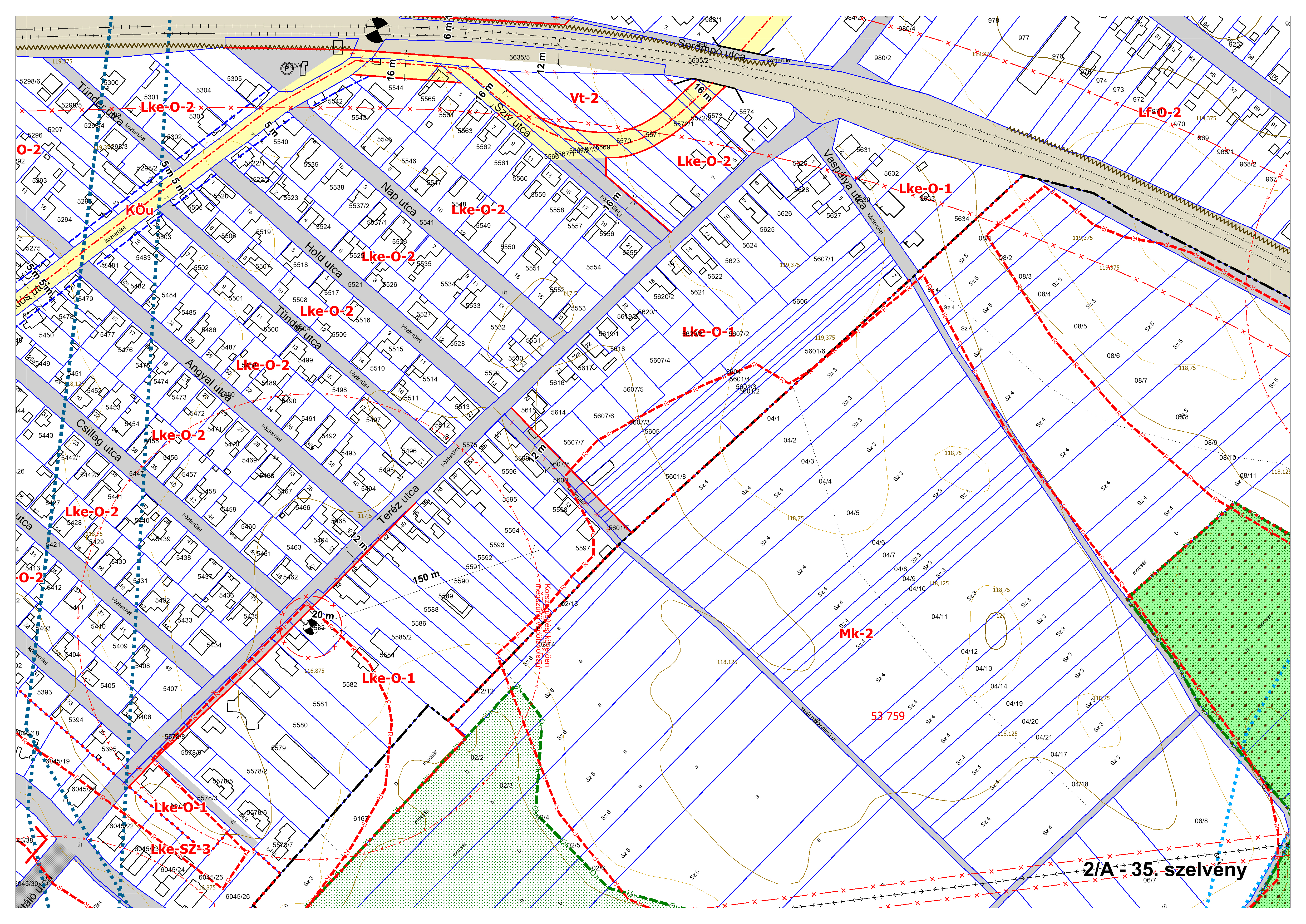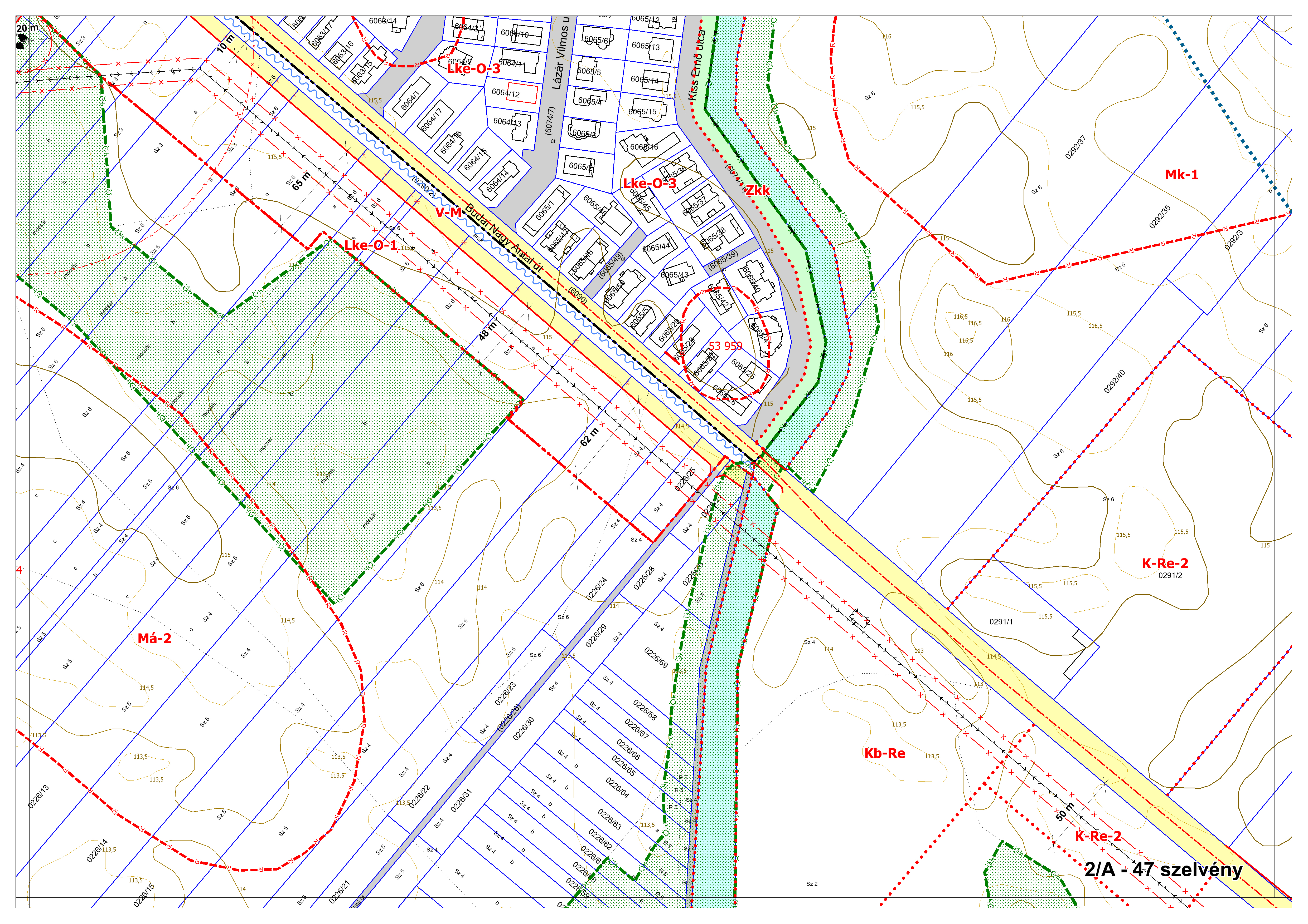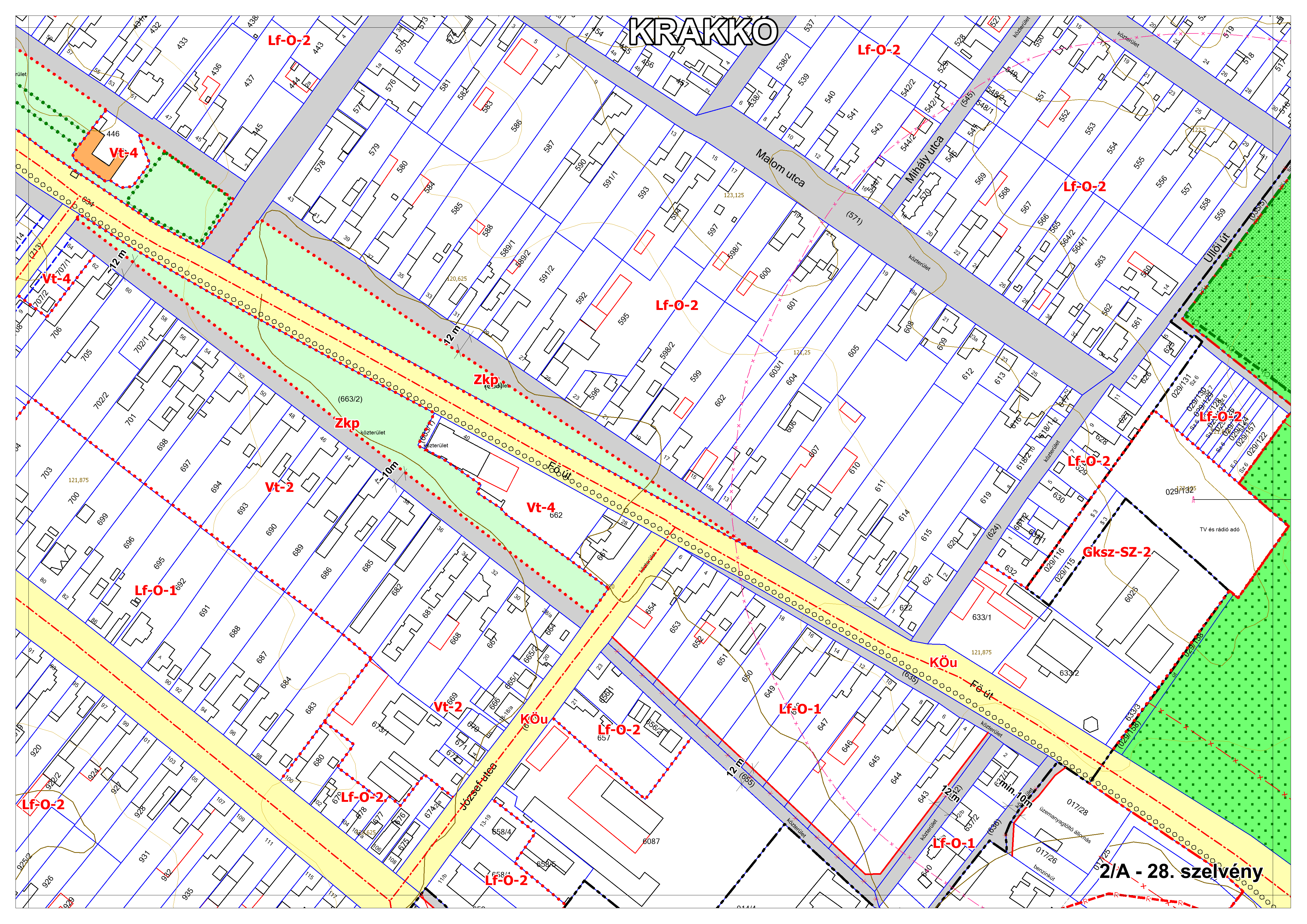 2/A. melléklet: a Szabályozási Terv jellemzően a belterületi szelvényei M=1:2000 méretarányban, 2/A-1.-től 2/A-48. tartó sorszámozással