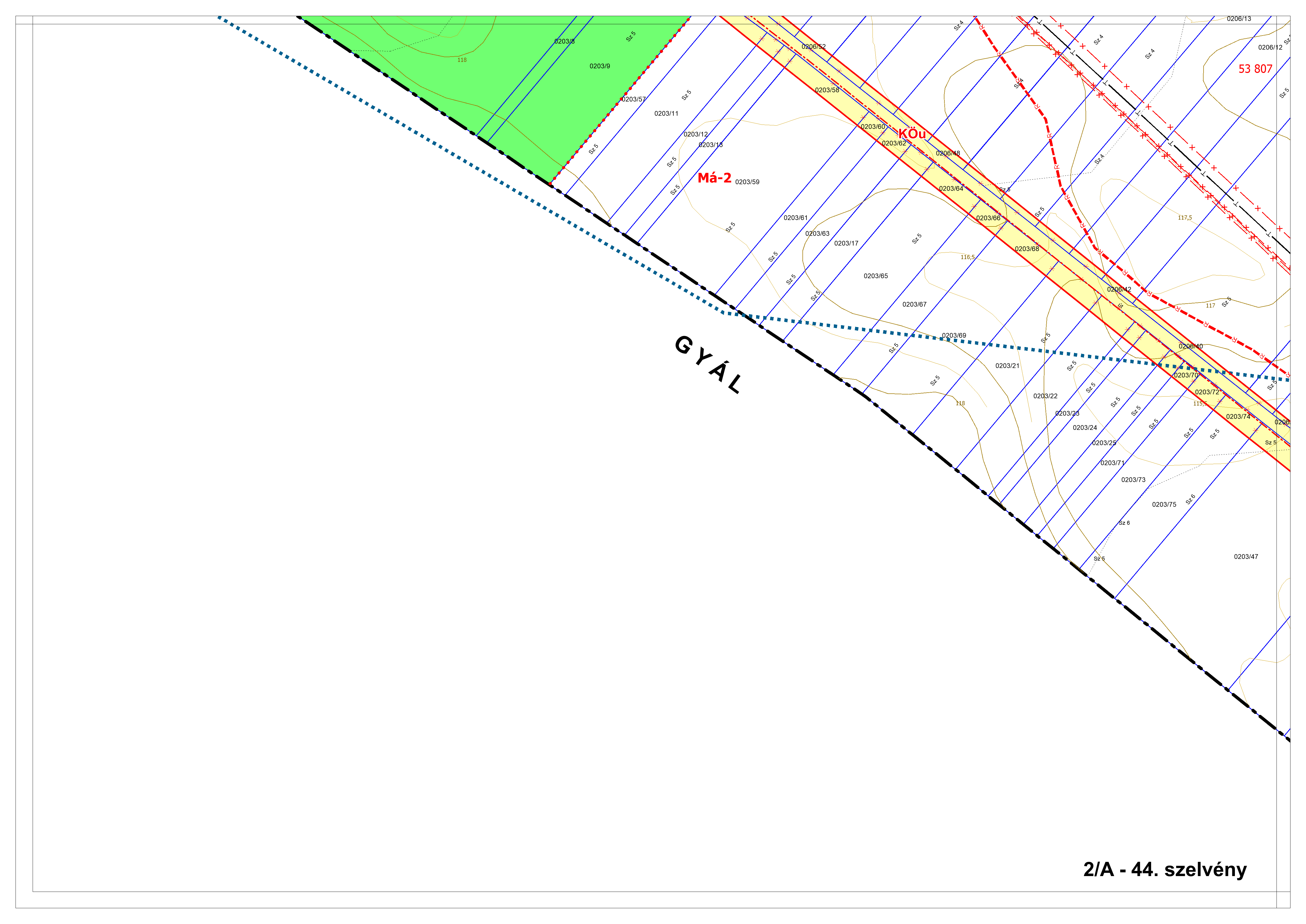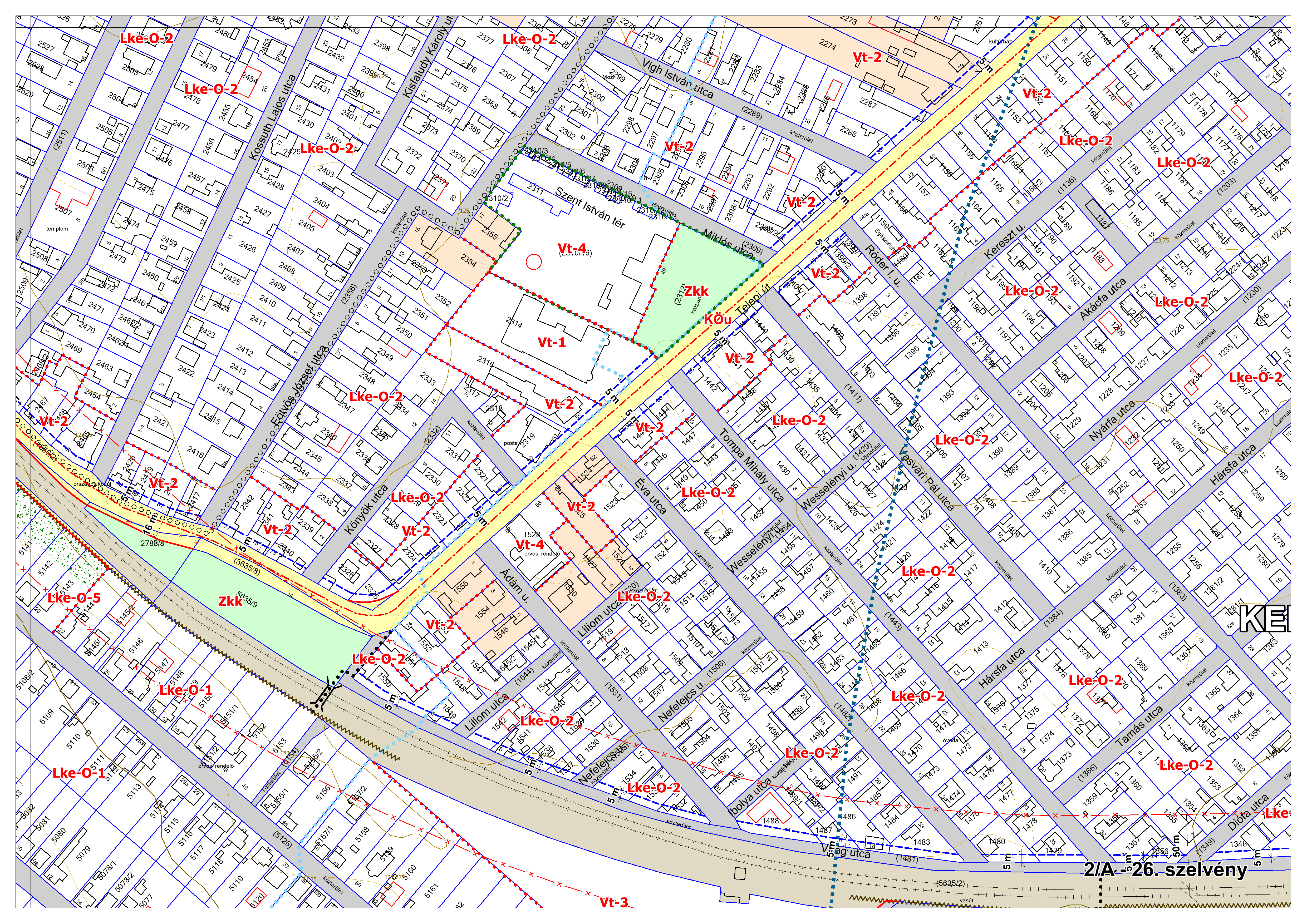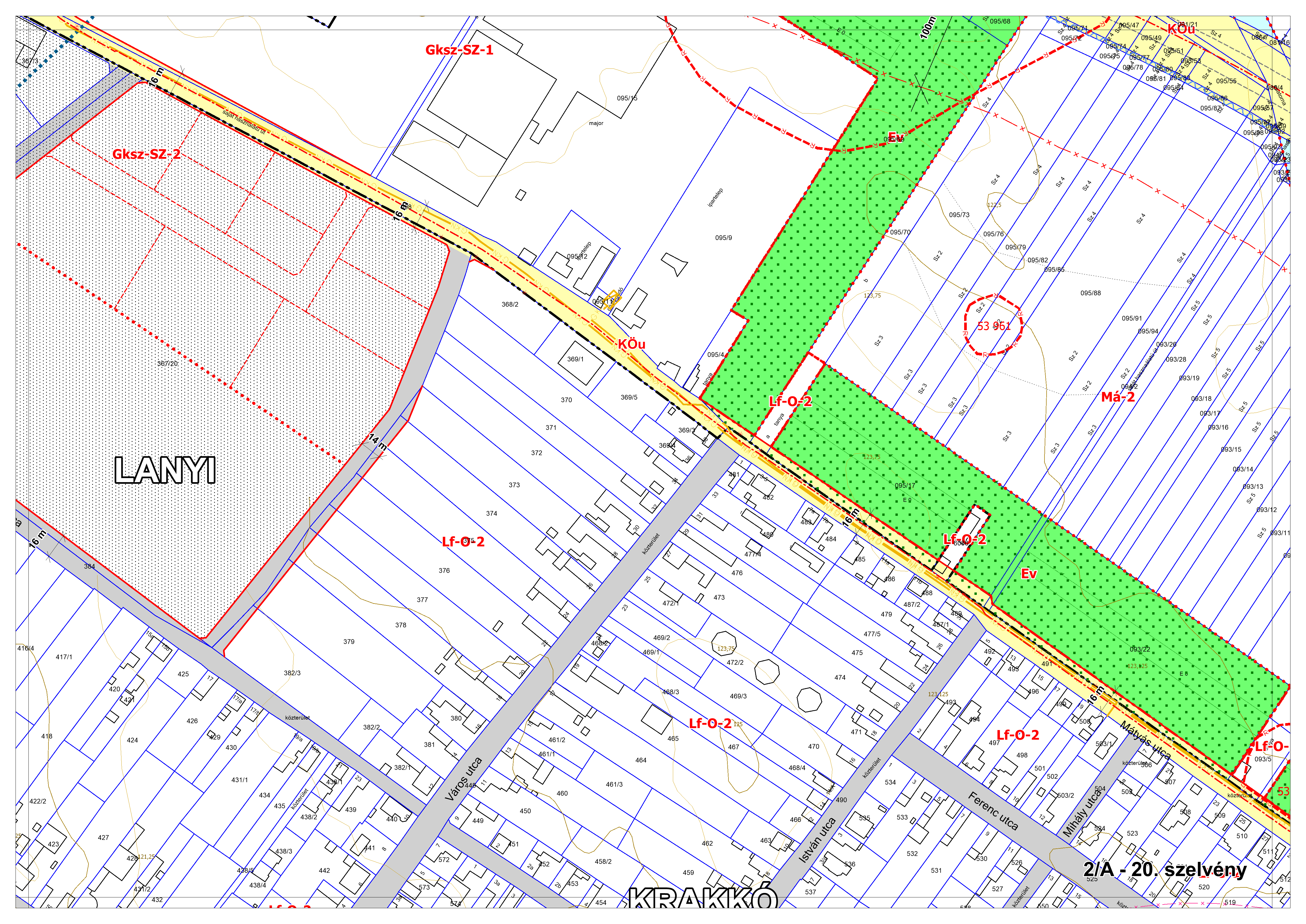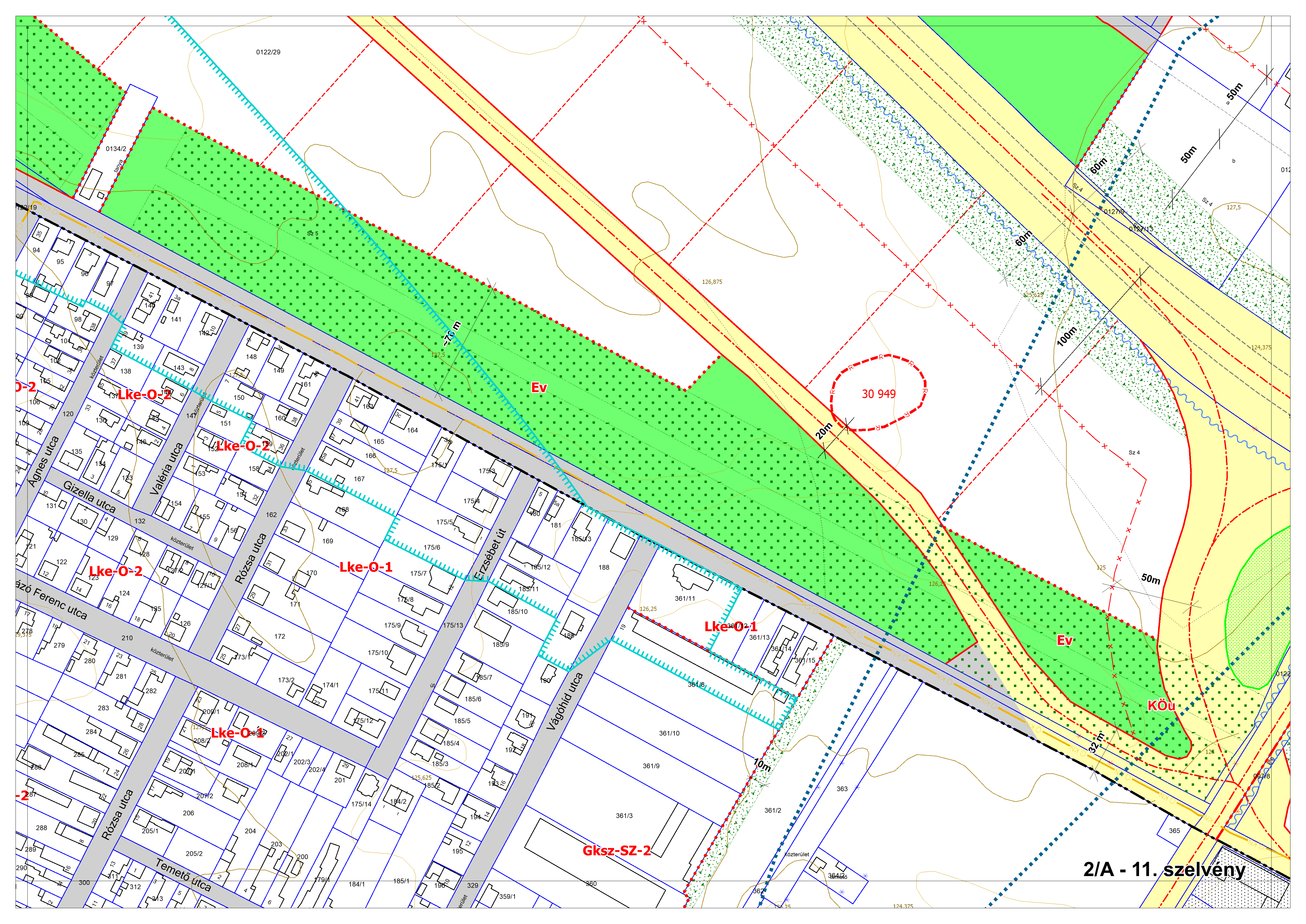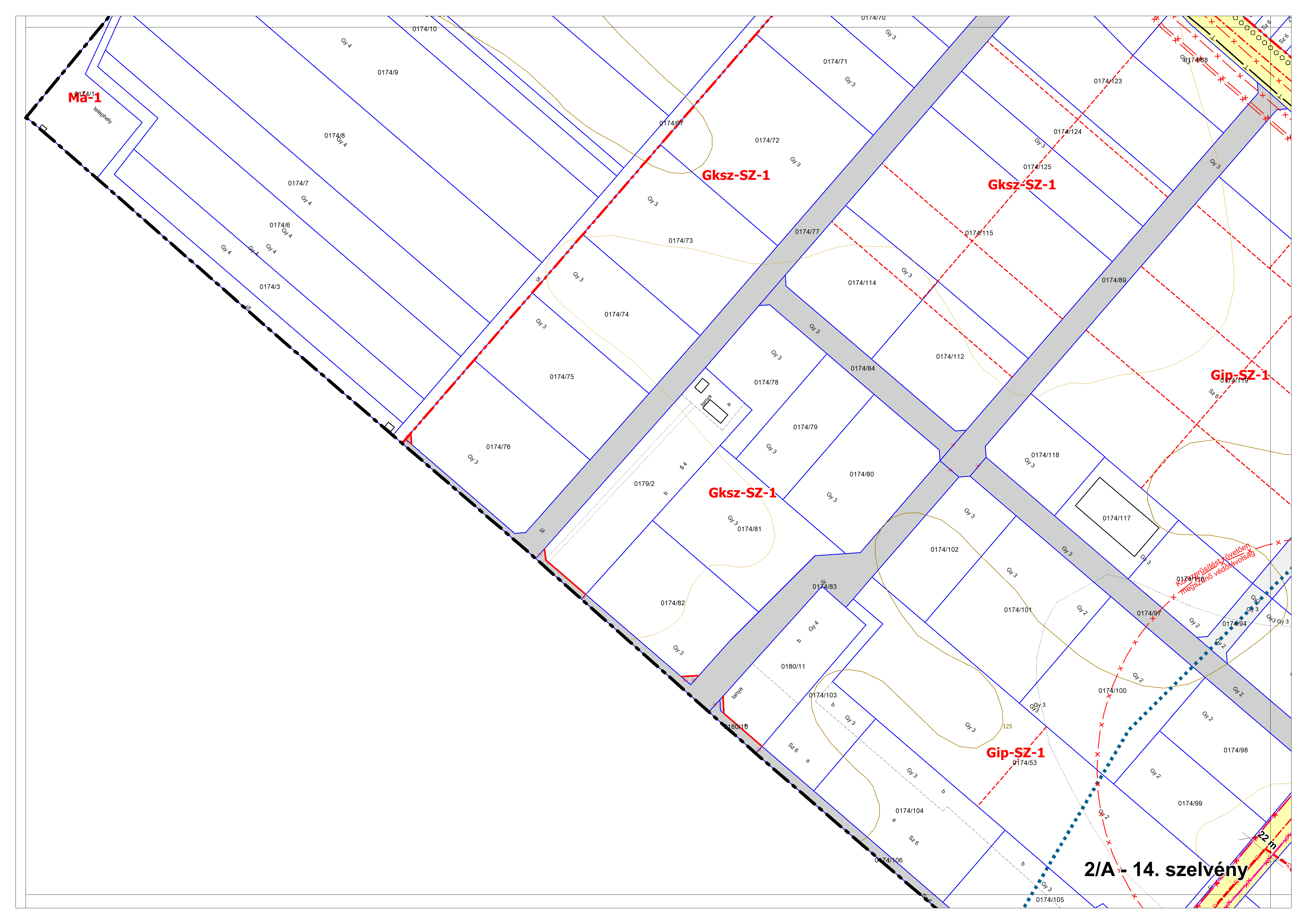 2/A. melléklet: a Szabályozási Terv jellemzően a belterületi szelvényei M=1:2000 méretarányban, 2/A-1.-től 2/A-48. tartó sorszámozással