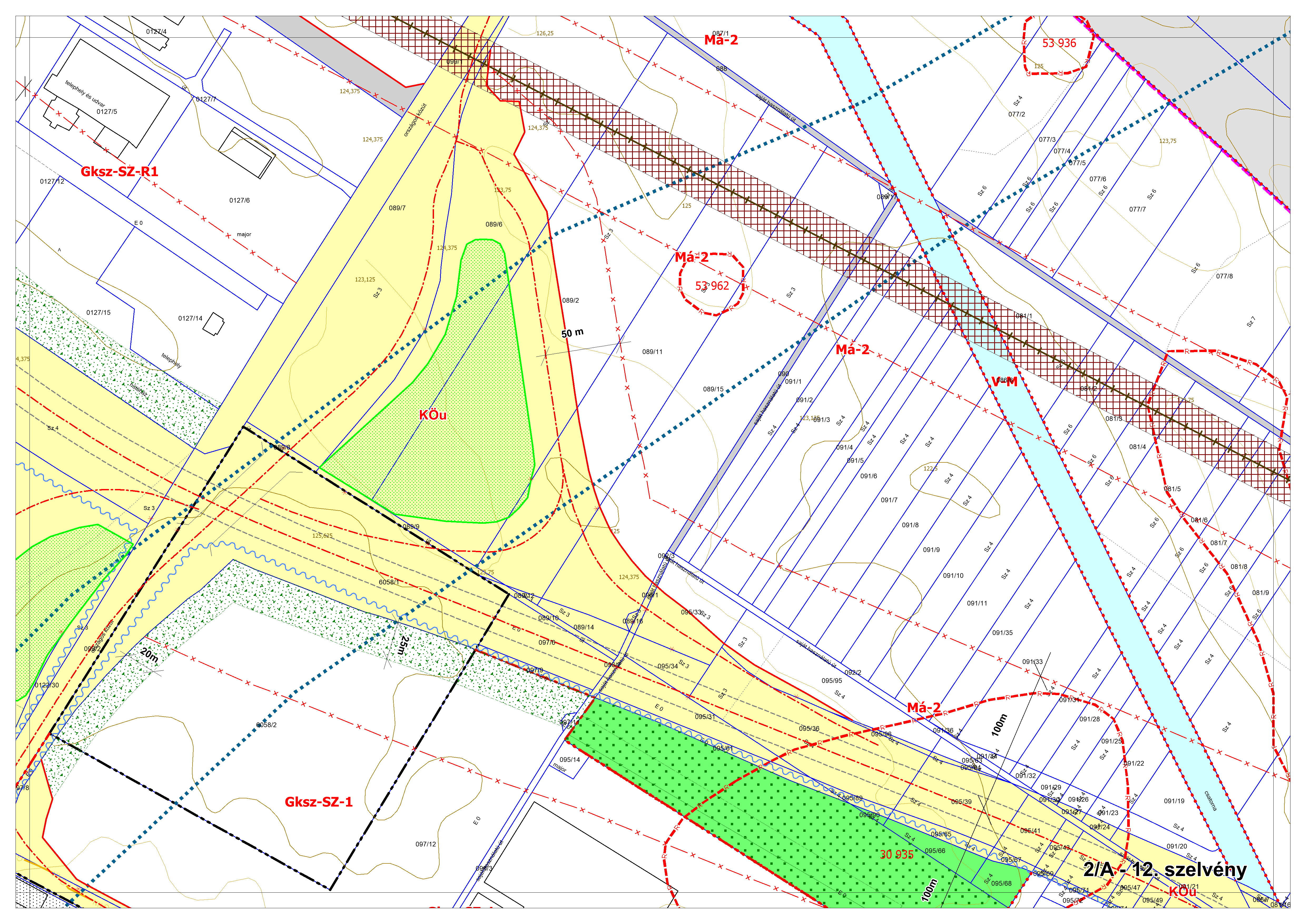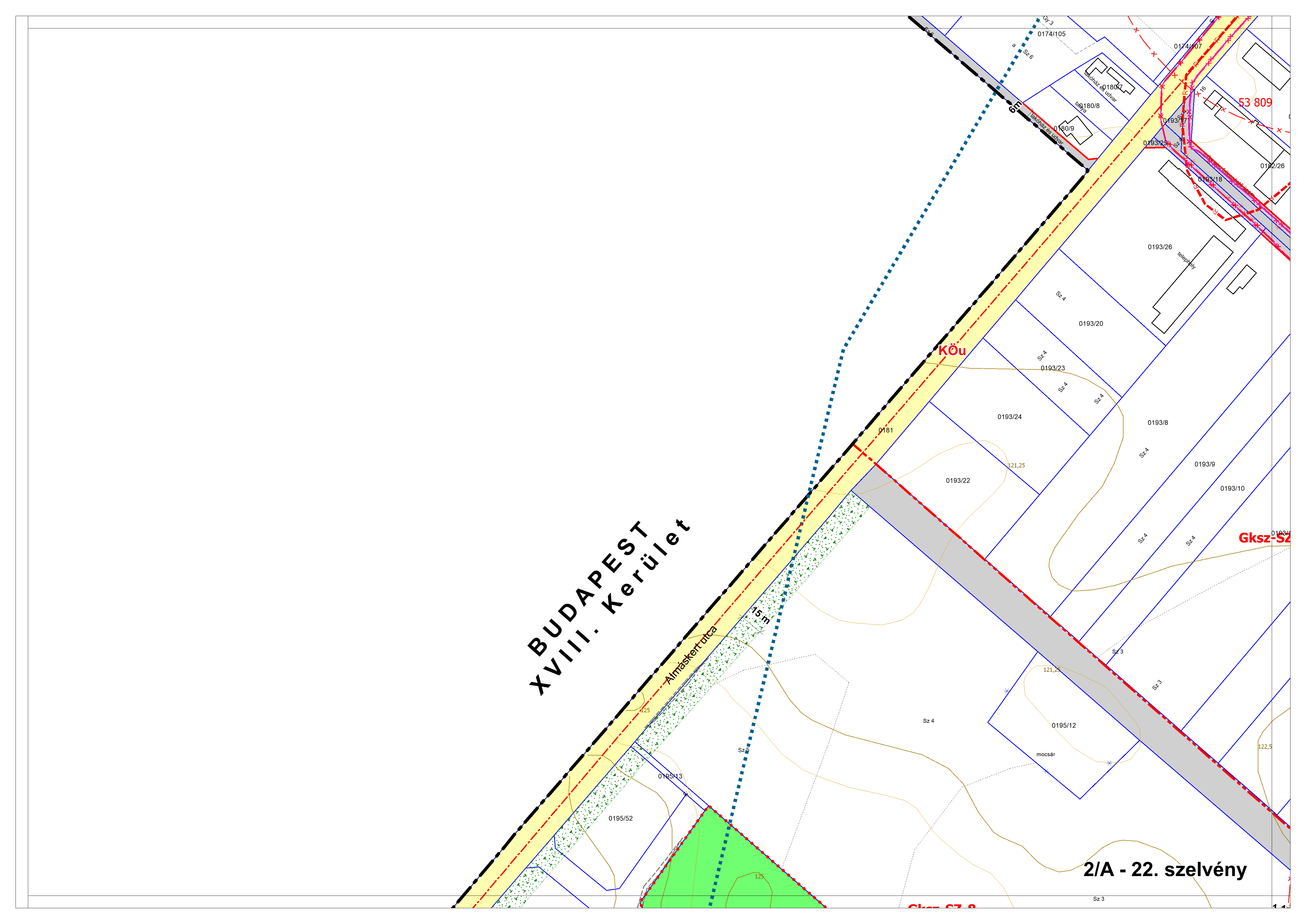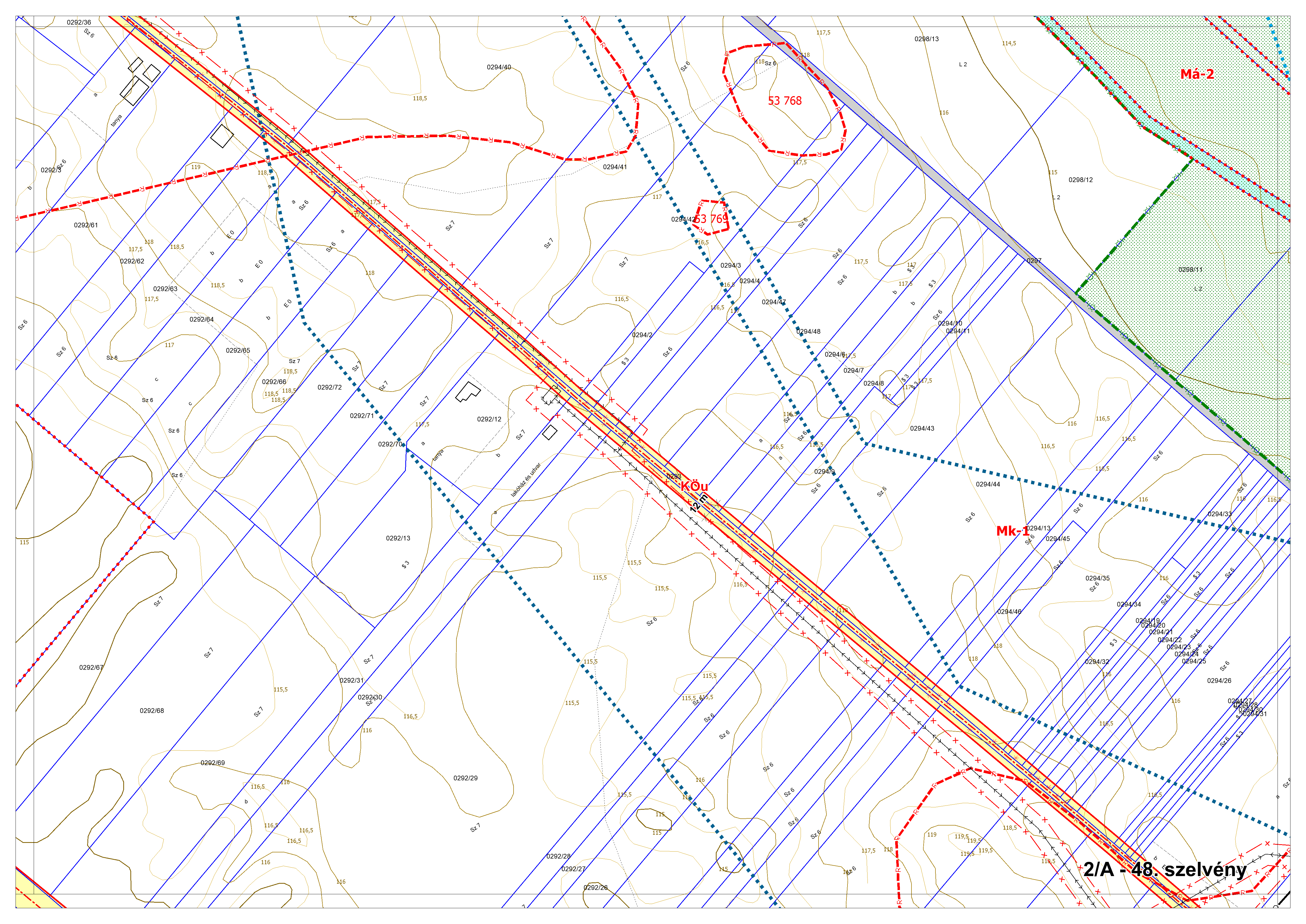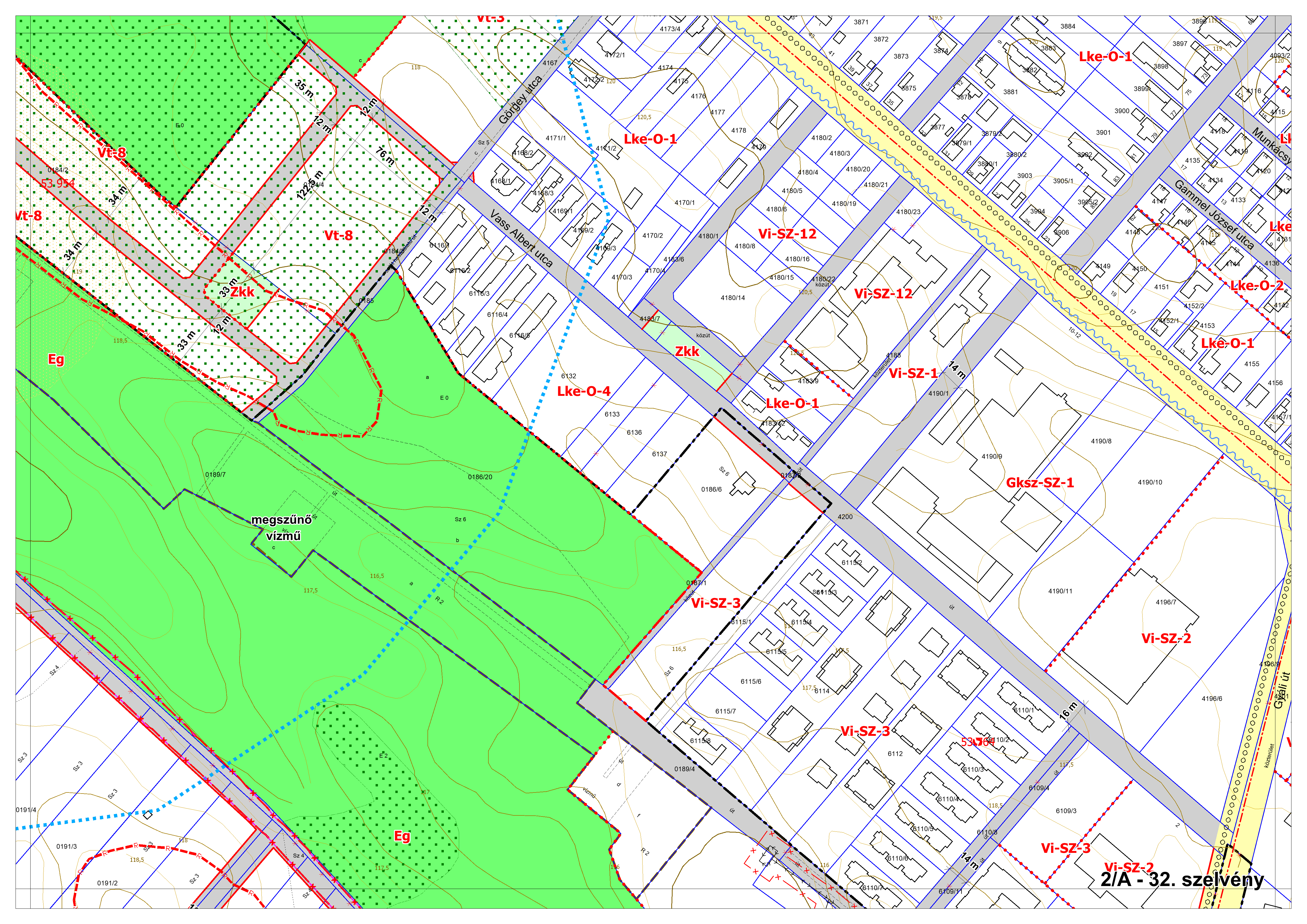 2/A. melléklet: a Szabályozási Terv jellemzően a belterületi szelvényei M=1:2000 méretarányban, 2/A-1.-től 2/A-48. tartó sorszámozással