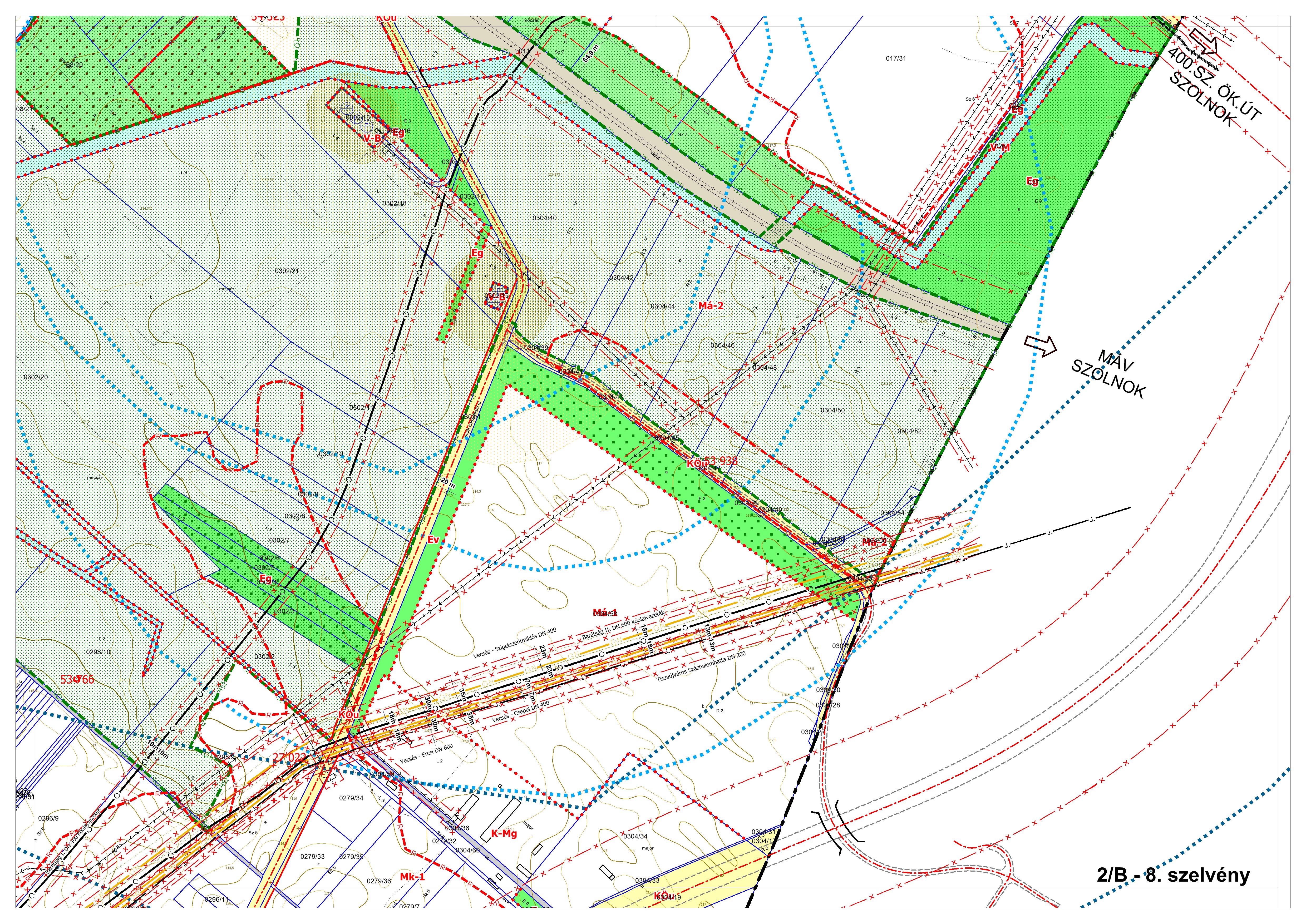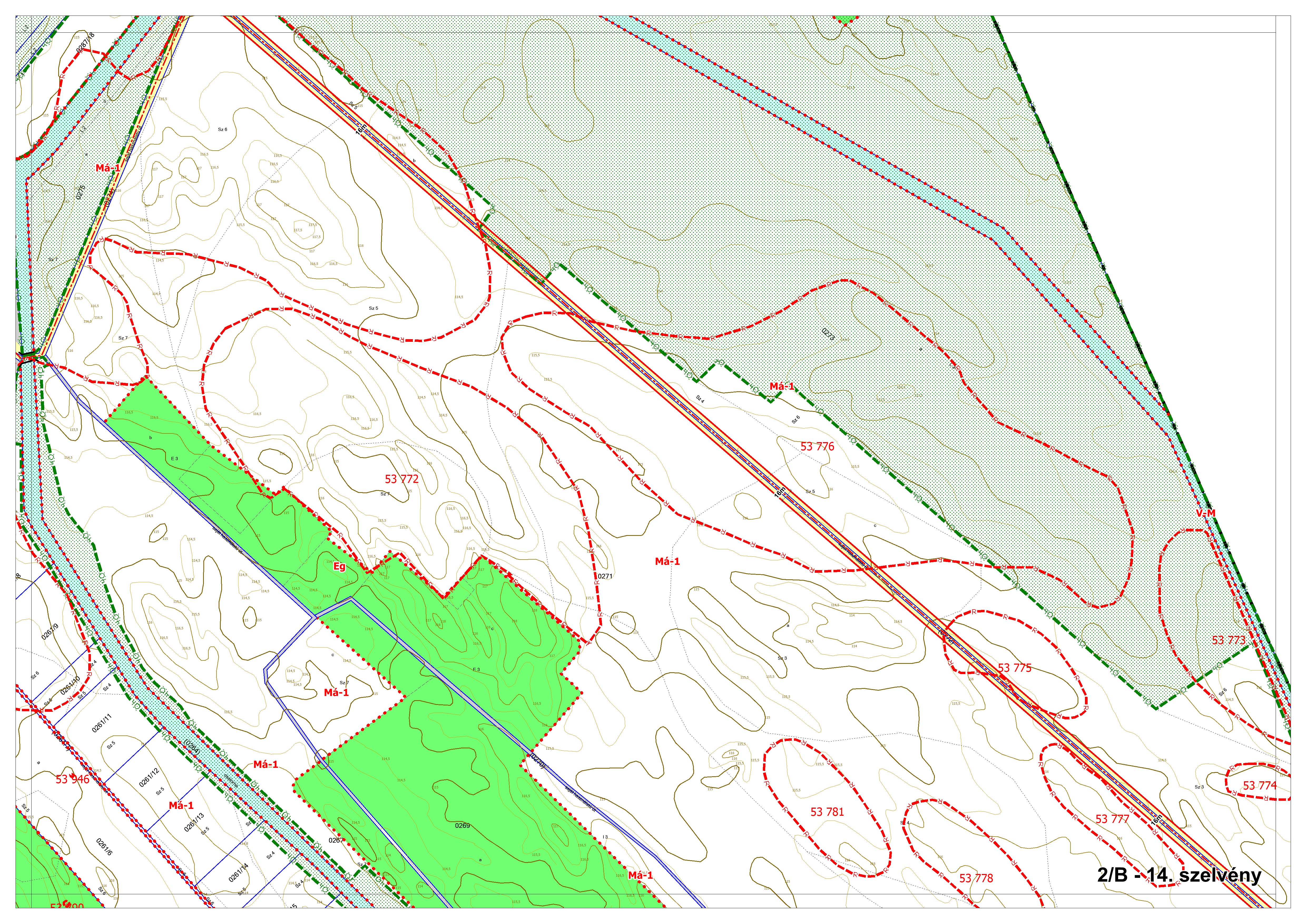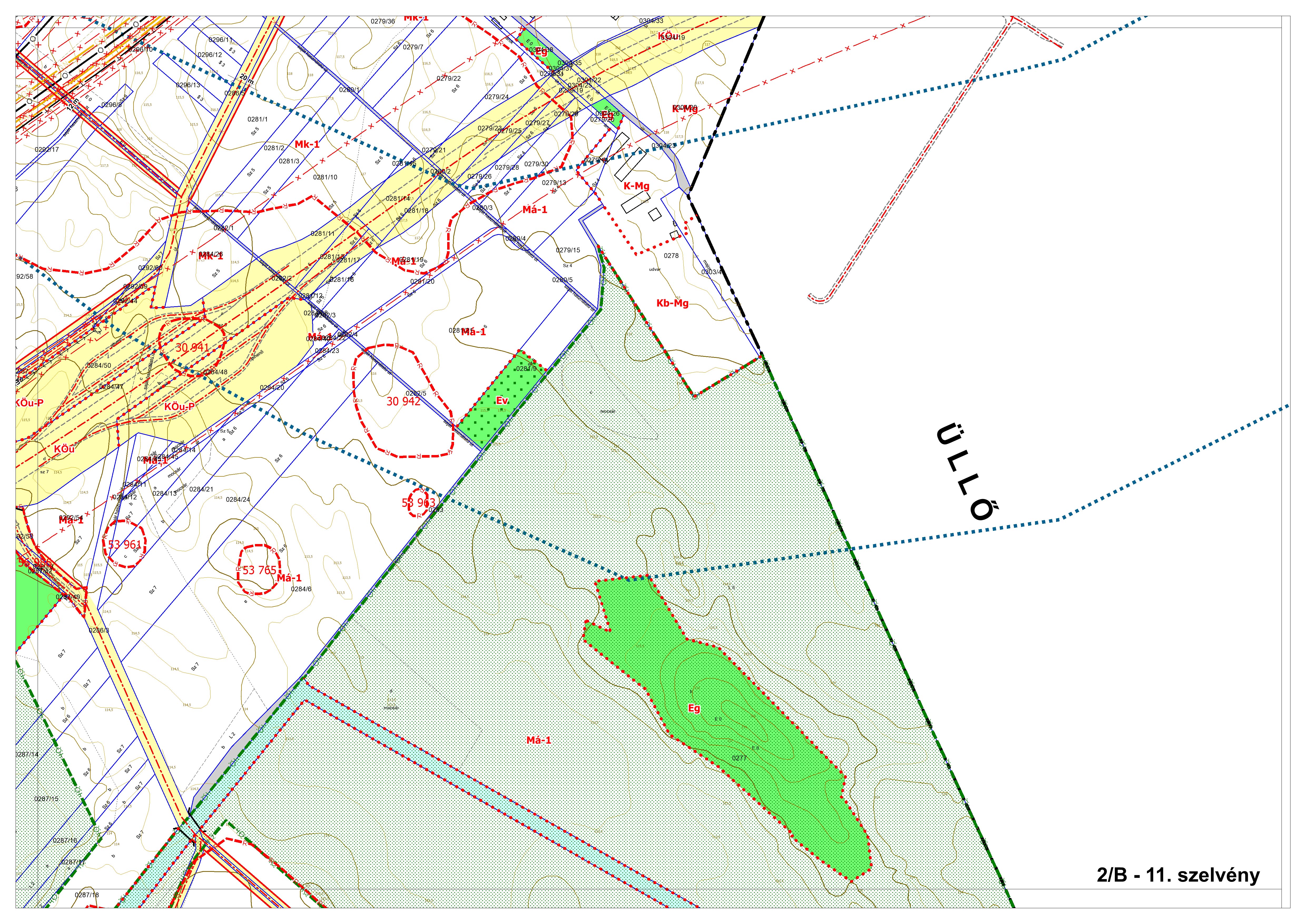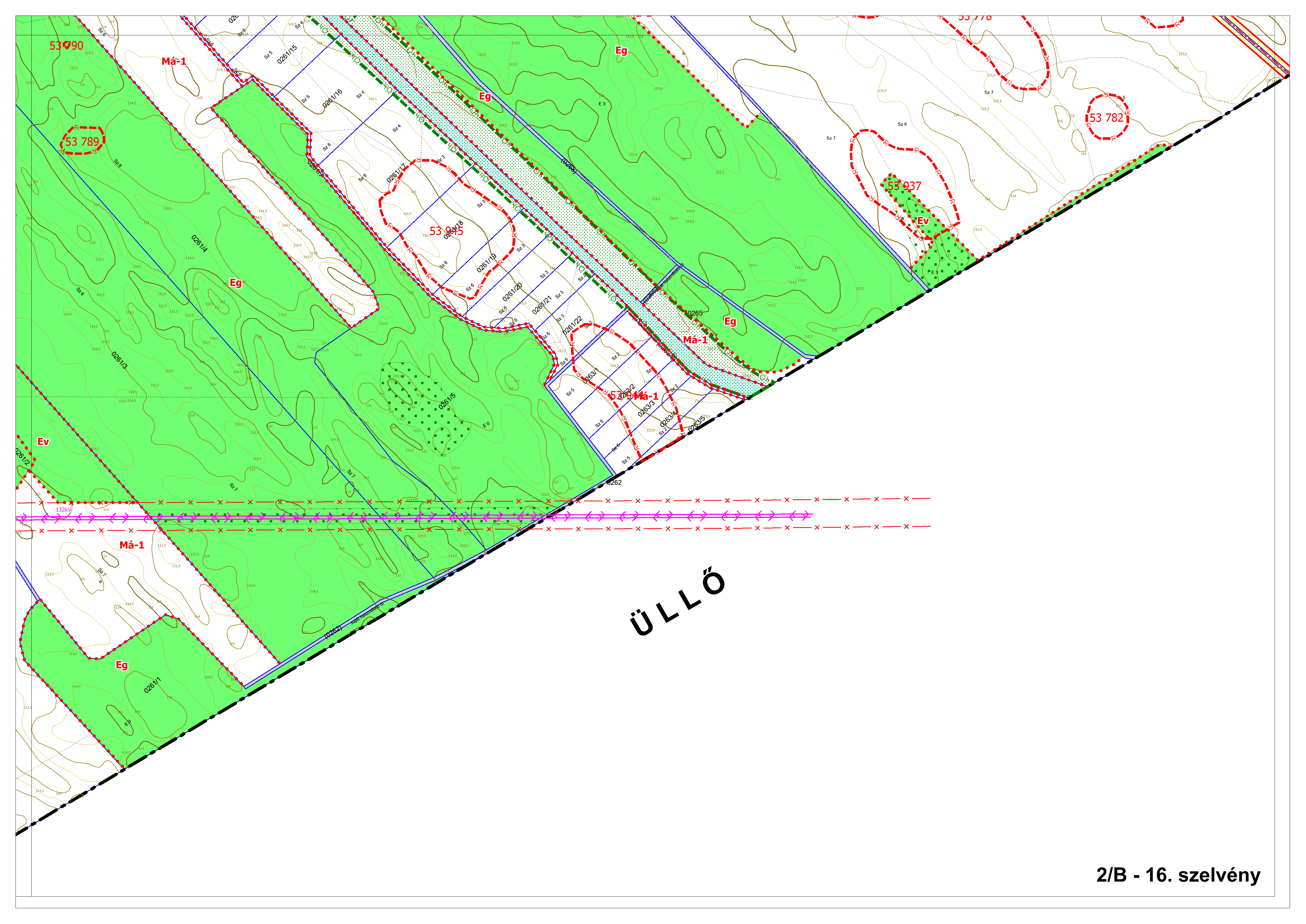 2/B. melléklet: a Szabályozási Terv jellemzően a külterületi szelvényei M=1:4000 méretarányban, 2/B-1.-től 2/B-16.-ig tartó sorszámozással