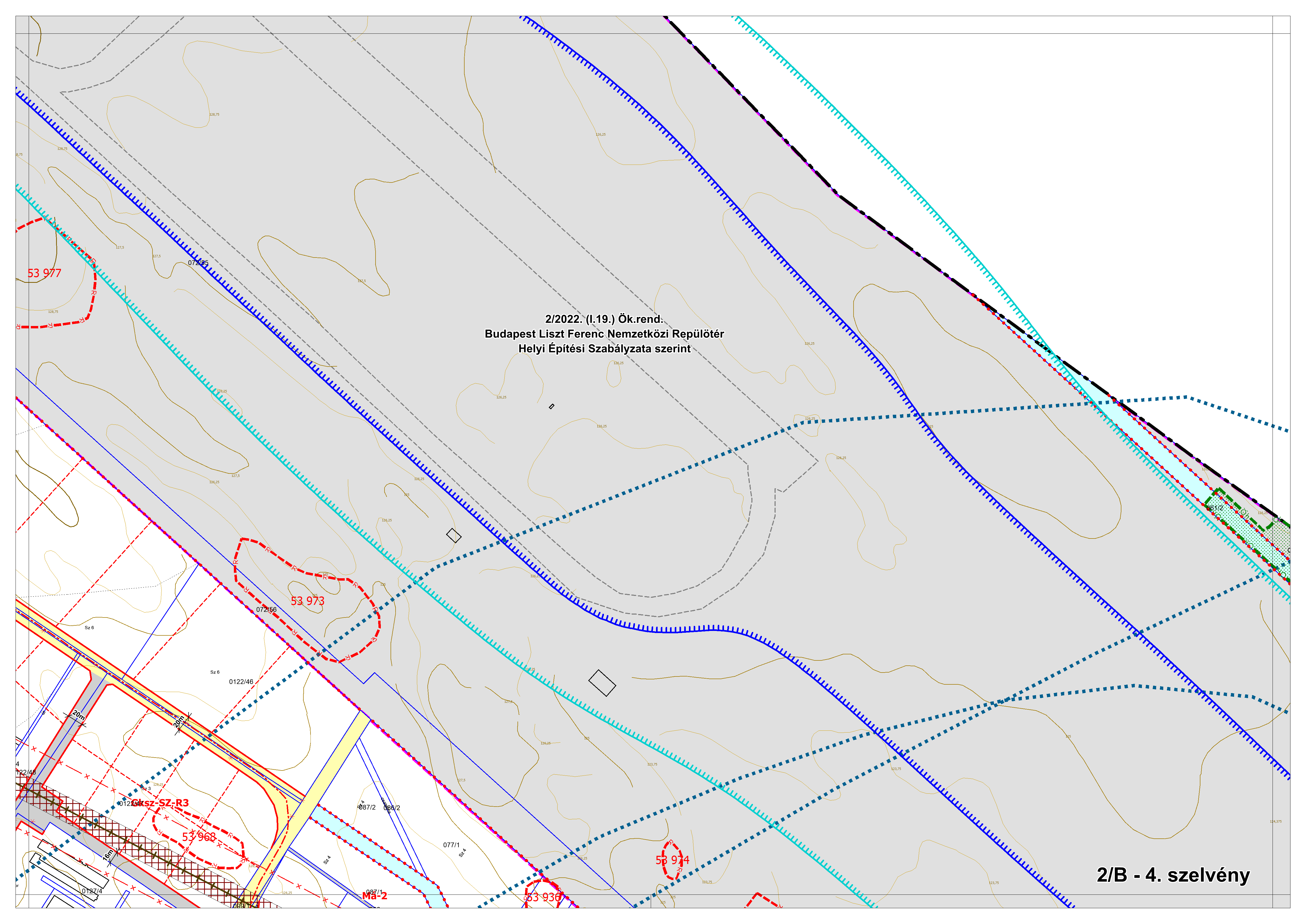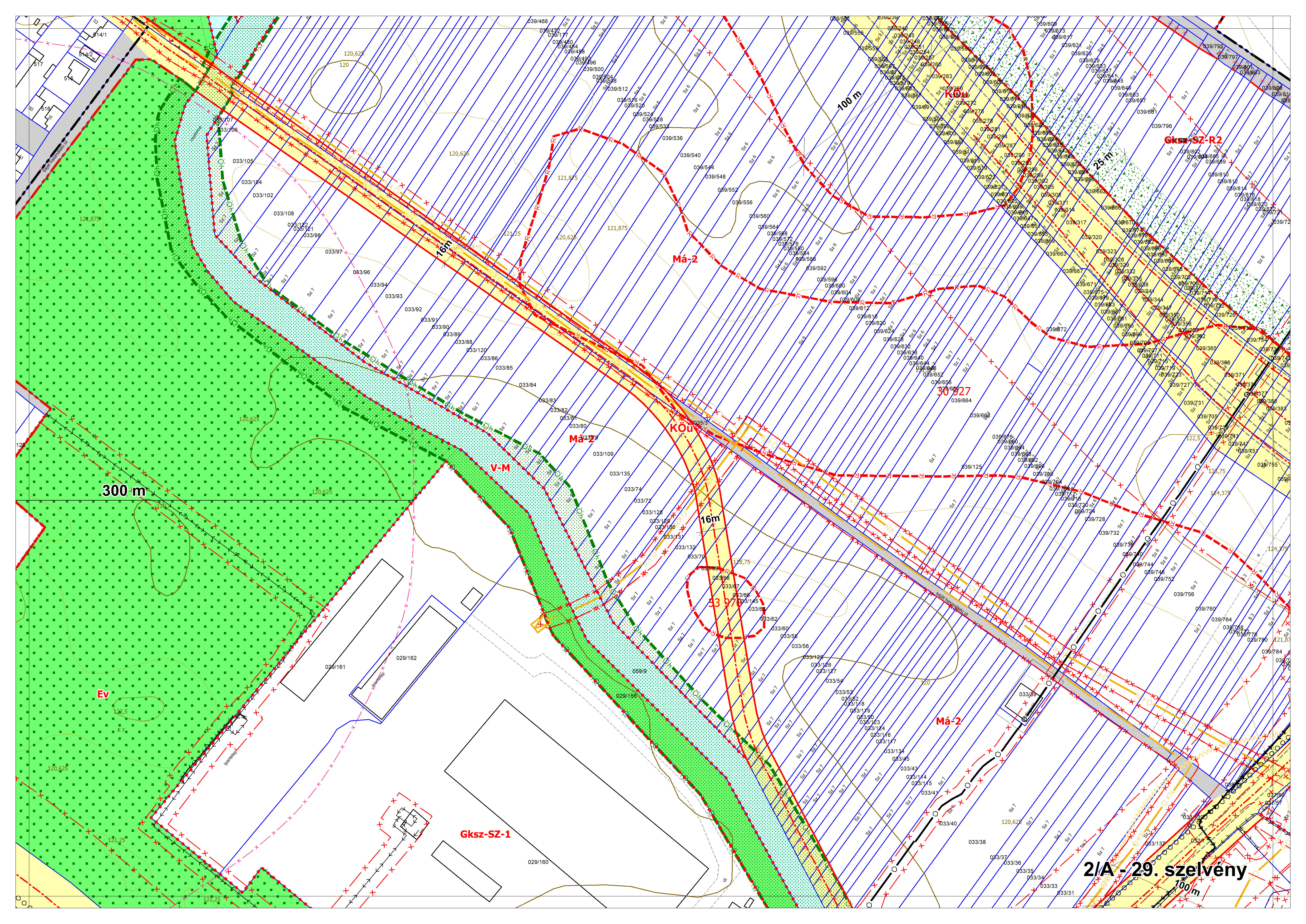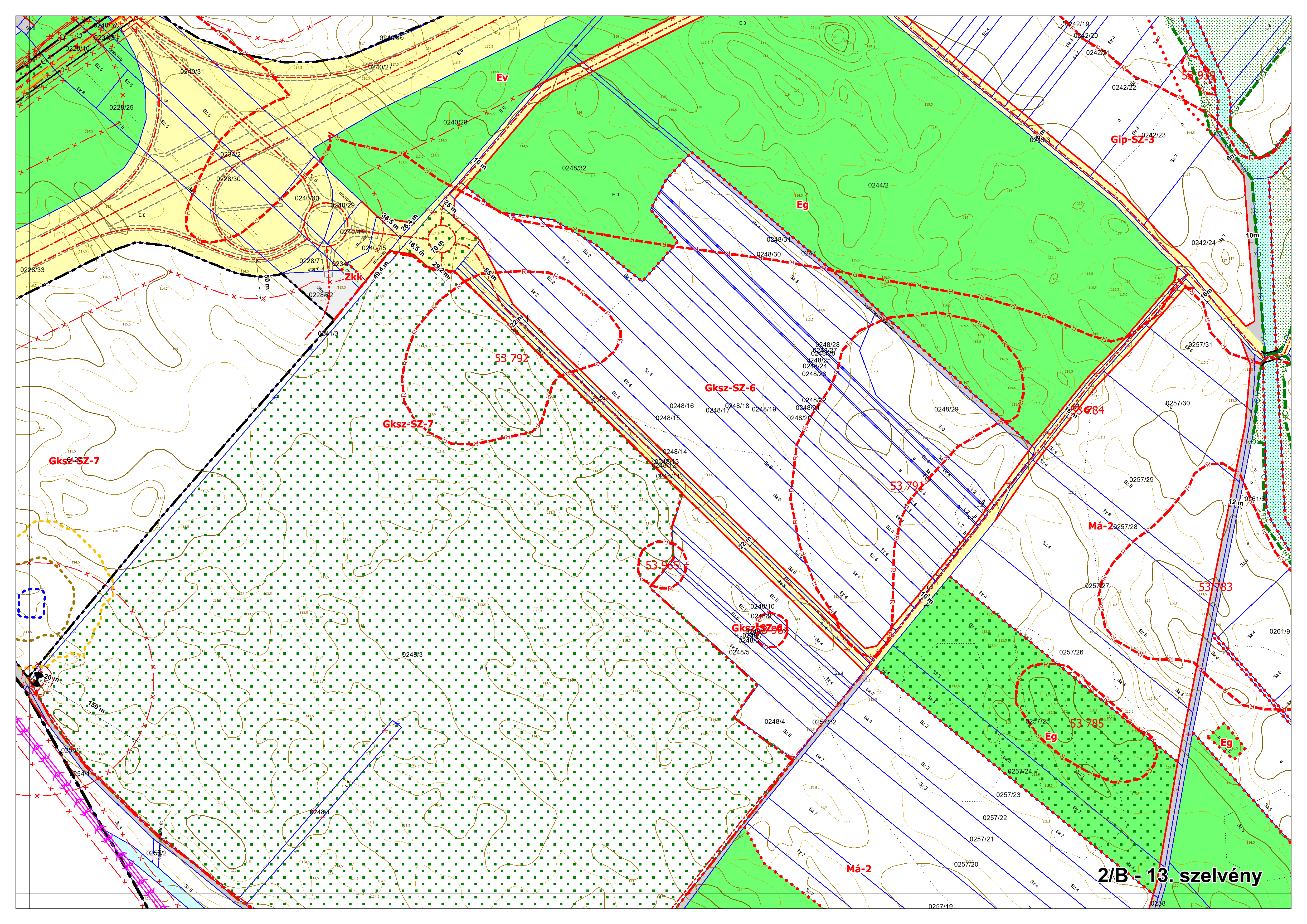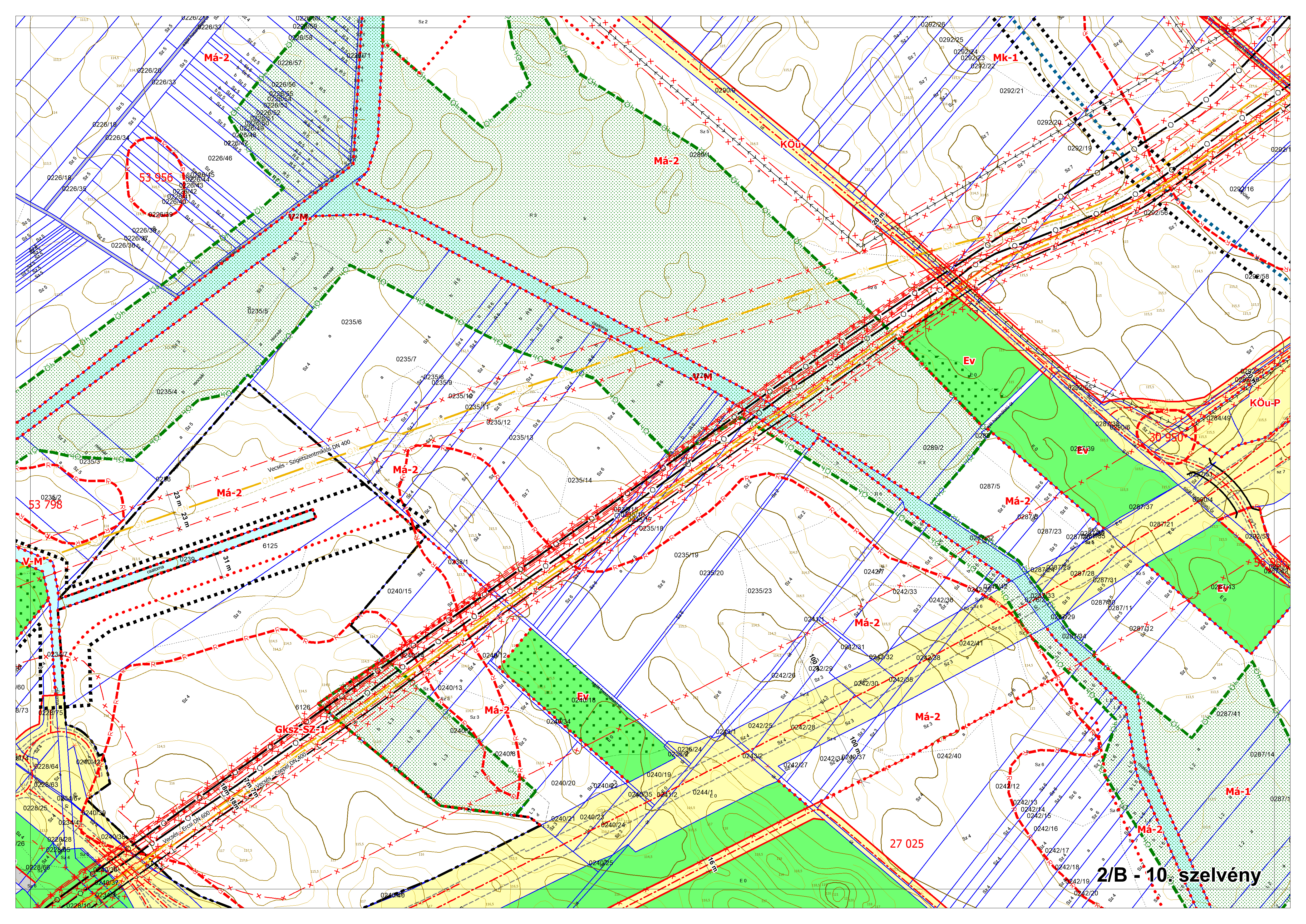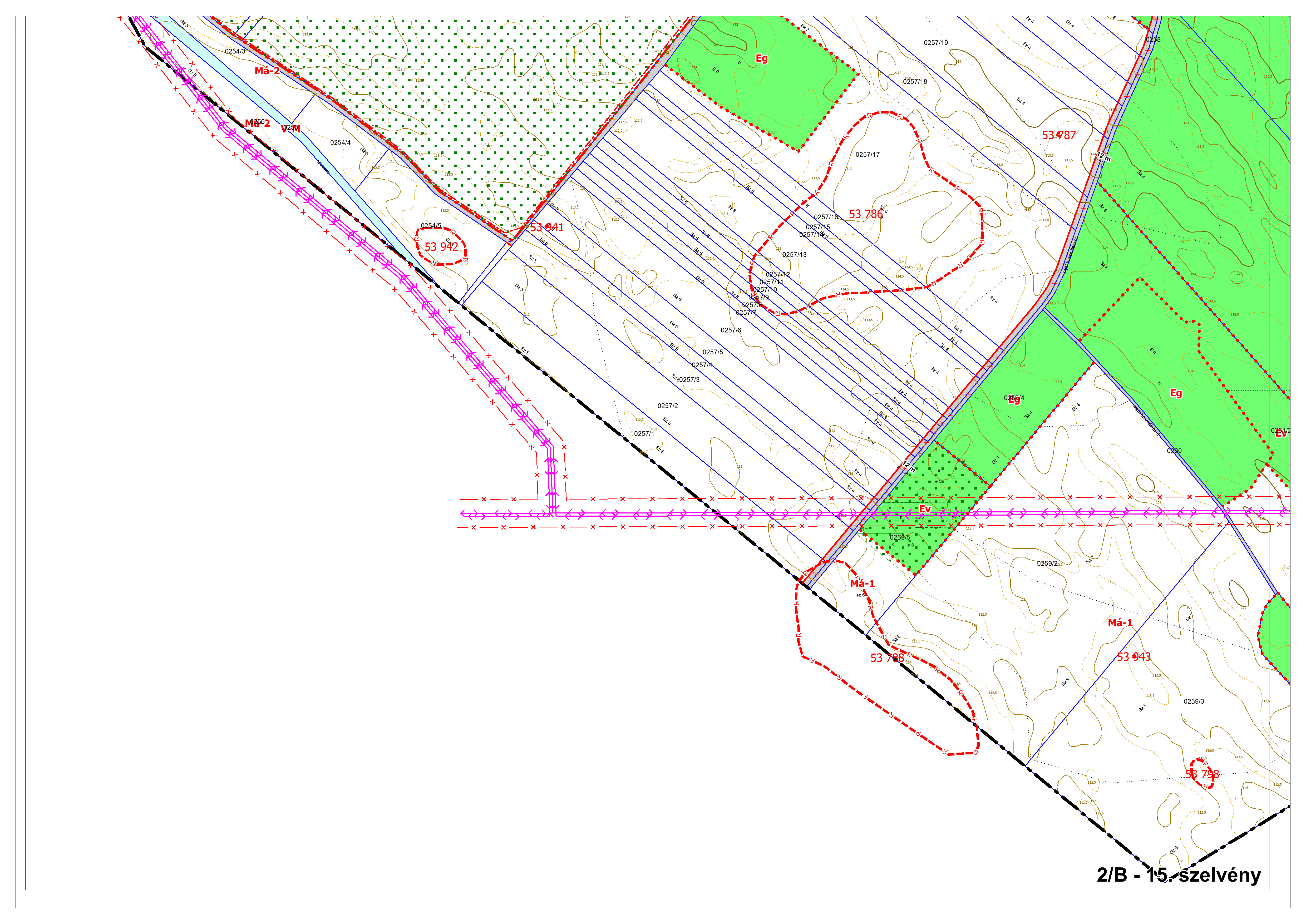 2/B. melléklet: a Szabályozási Terv jellemzően a külterületi szelvényei M=1:4000 méretarányban, 2/B-1.-től 2/B-16.-ig tartó sorszámozással