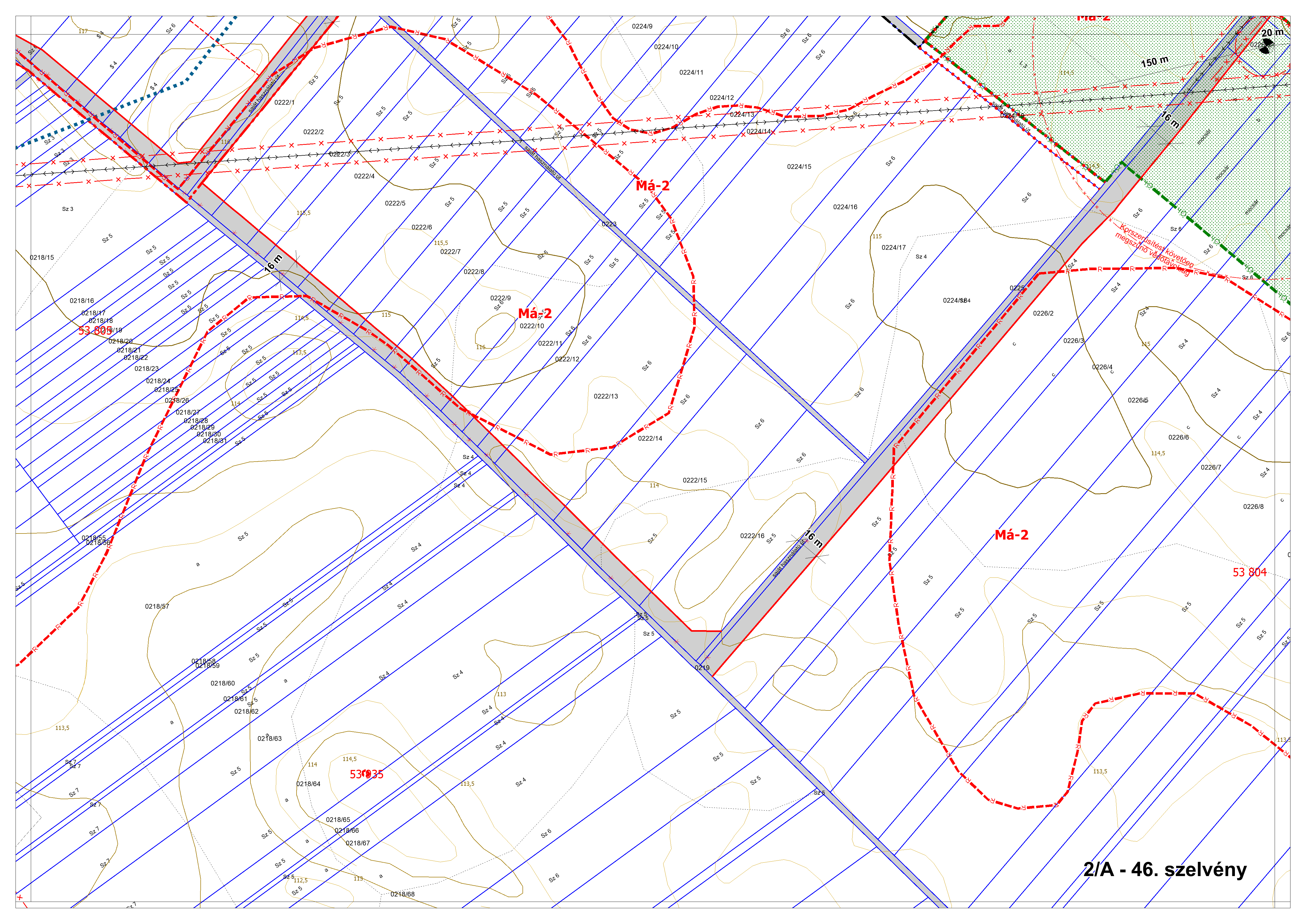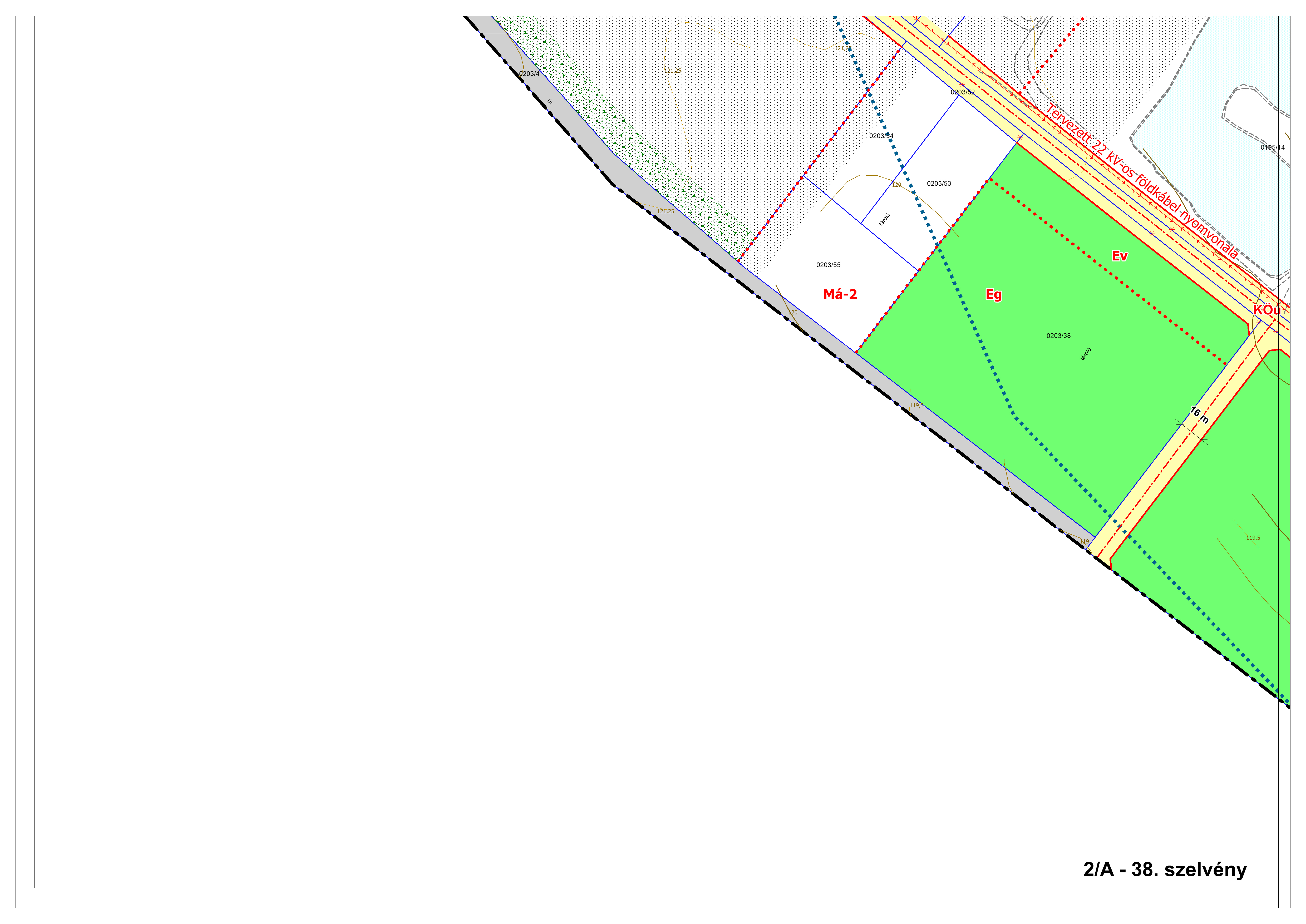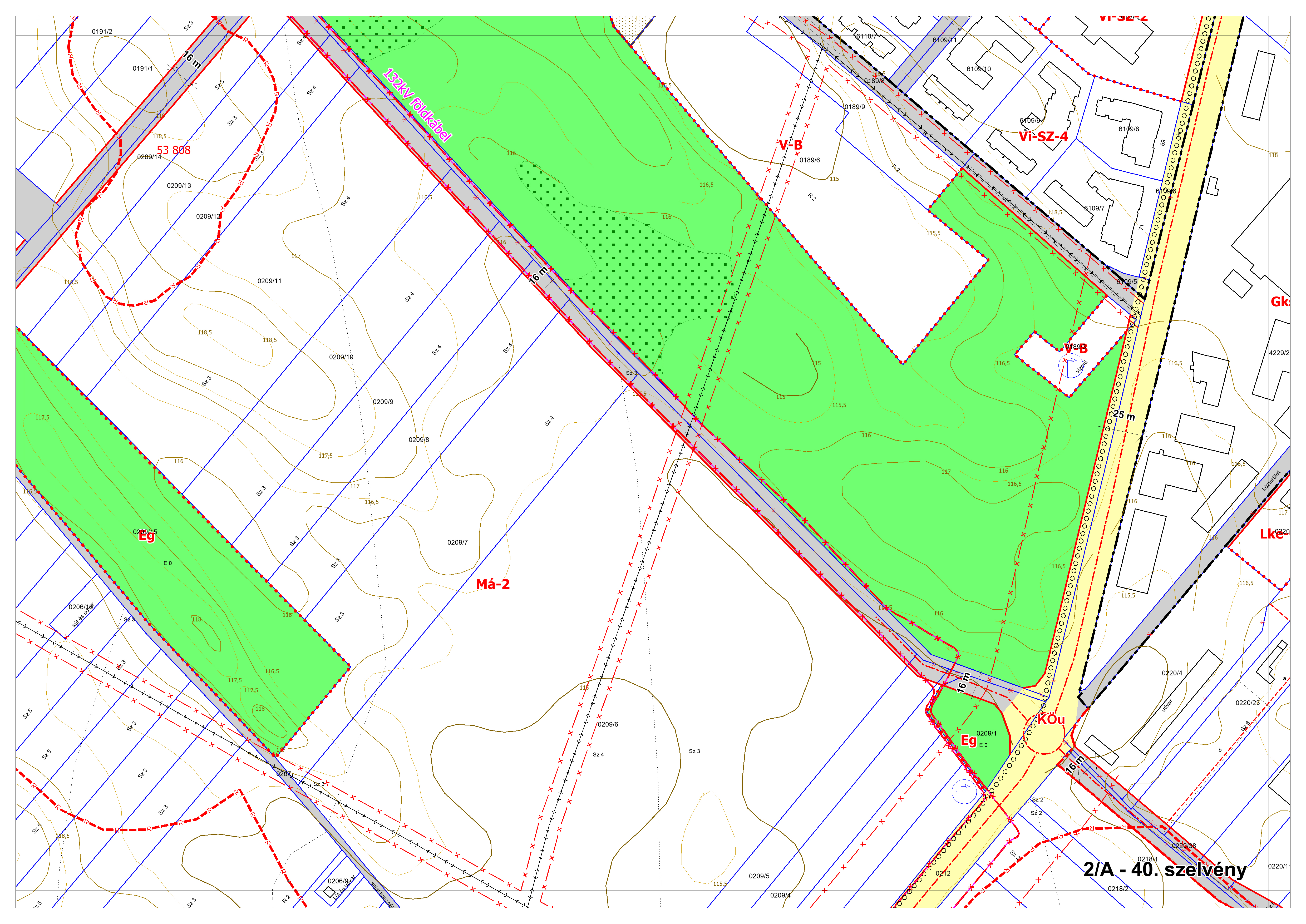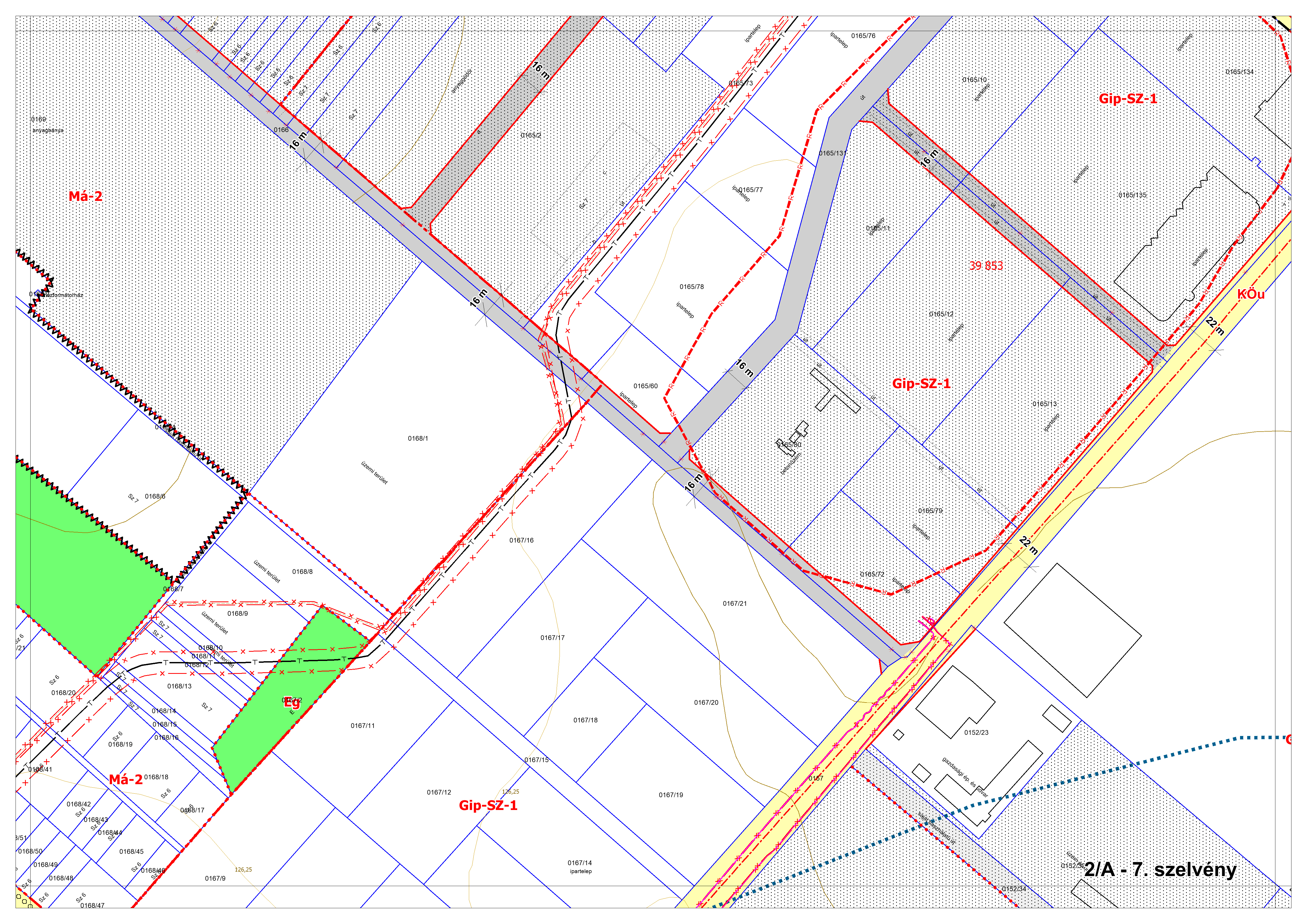 2/B. melléklet: a Szabályozási Terv jellemzően a külterületi szelvényei M=1:4000 méretarányban, 2/B-1.-től 2/B-16.-ig tartó sorszámozással