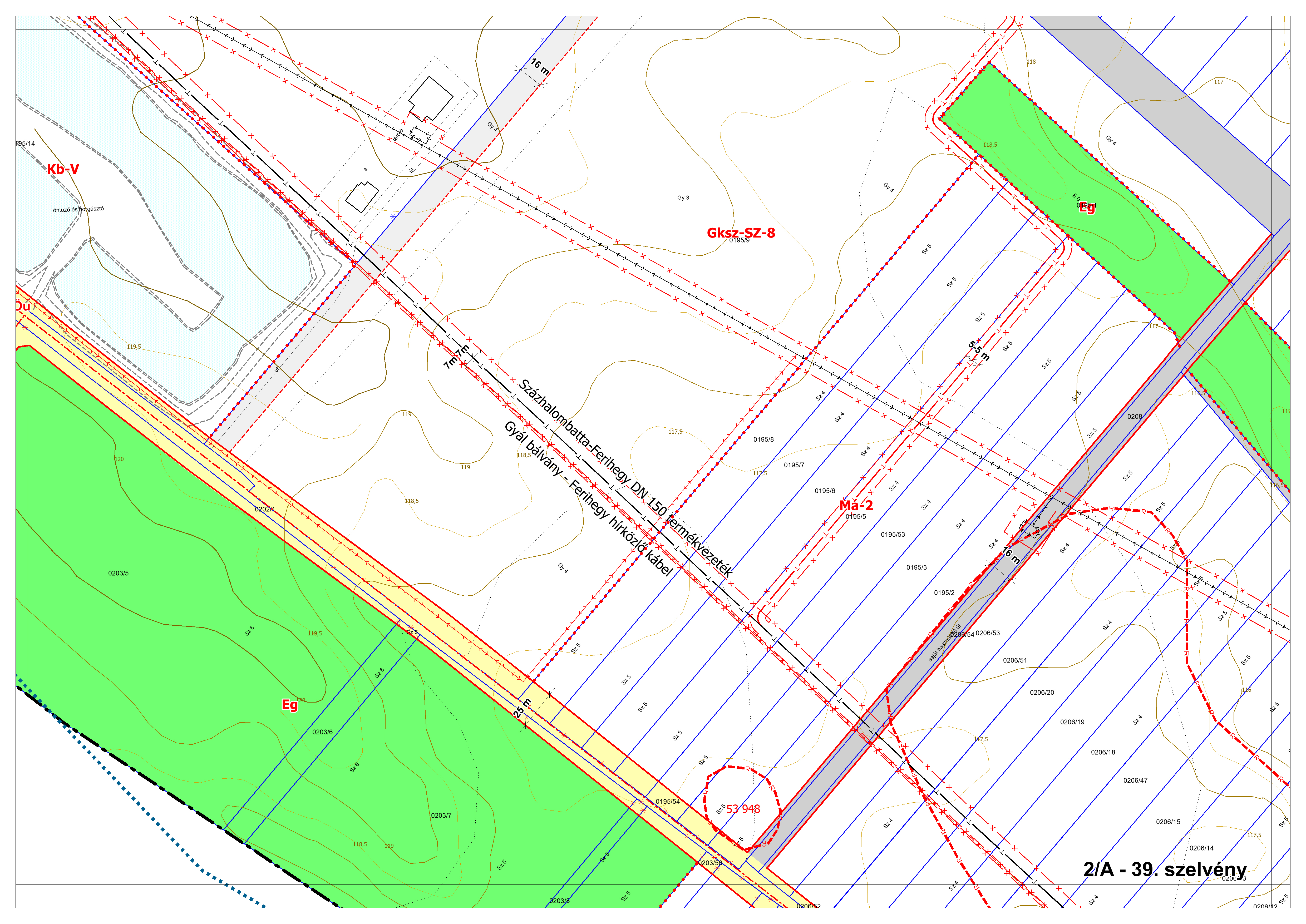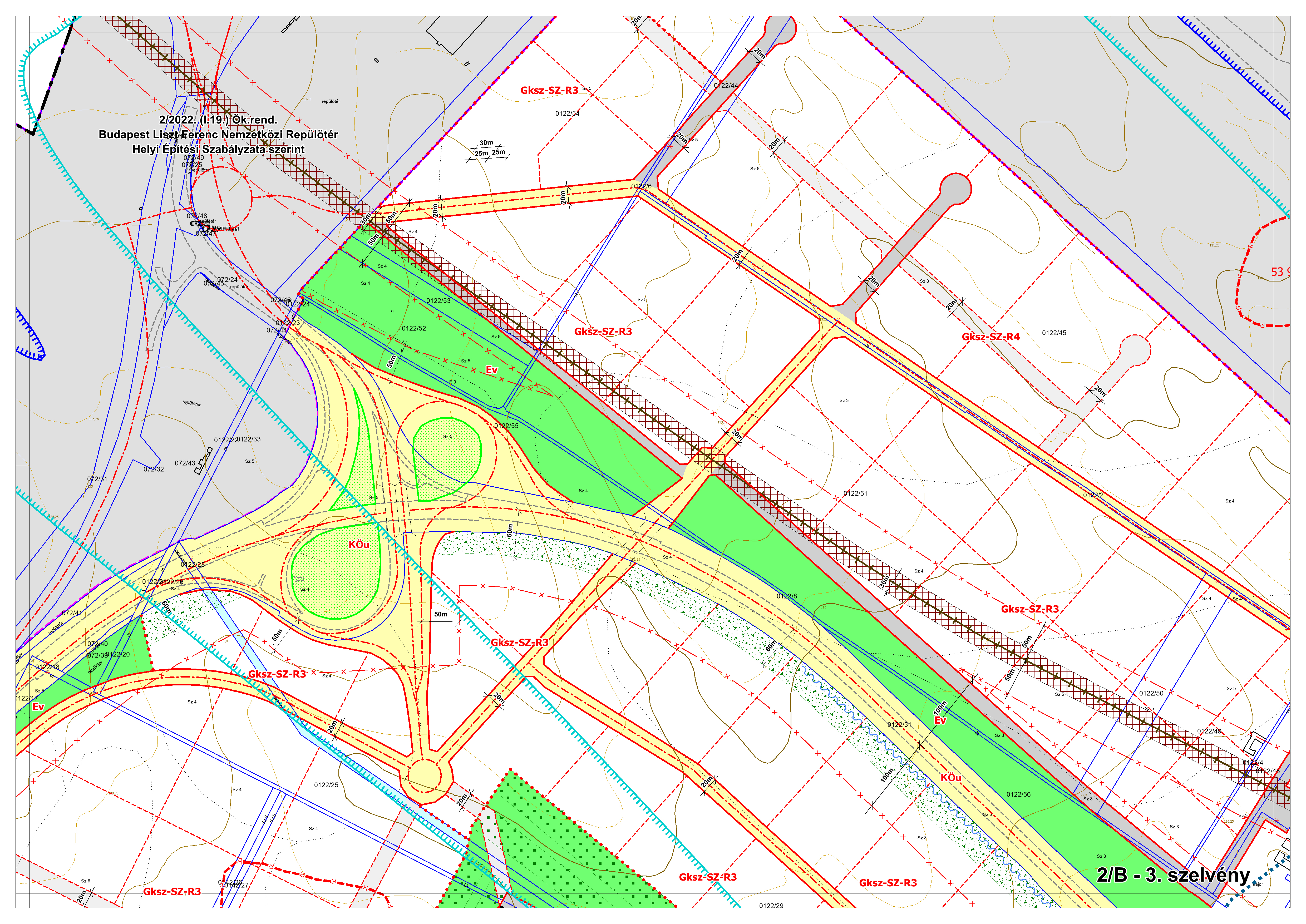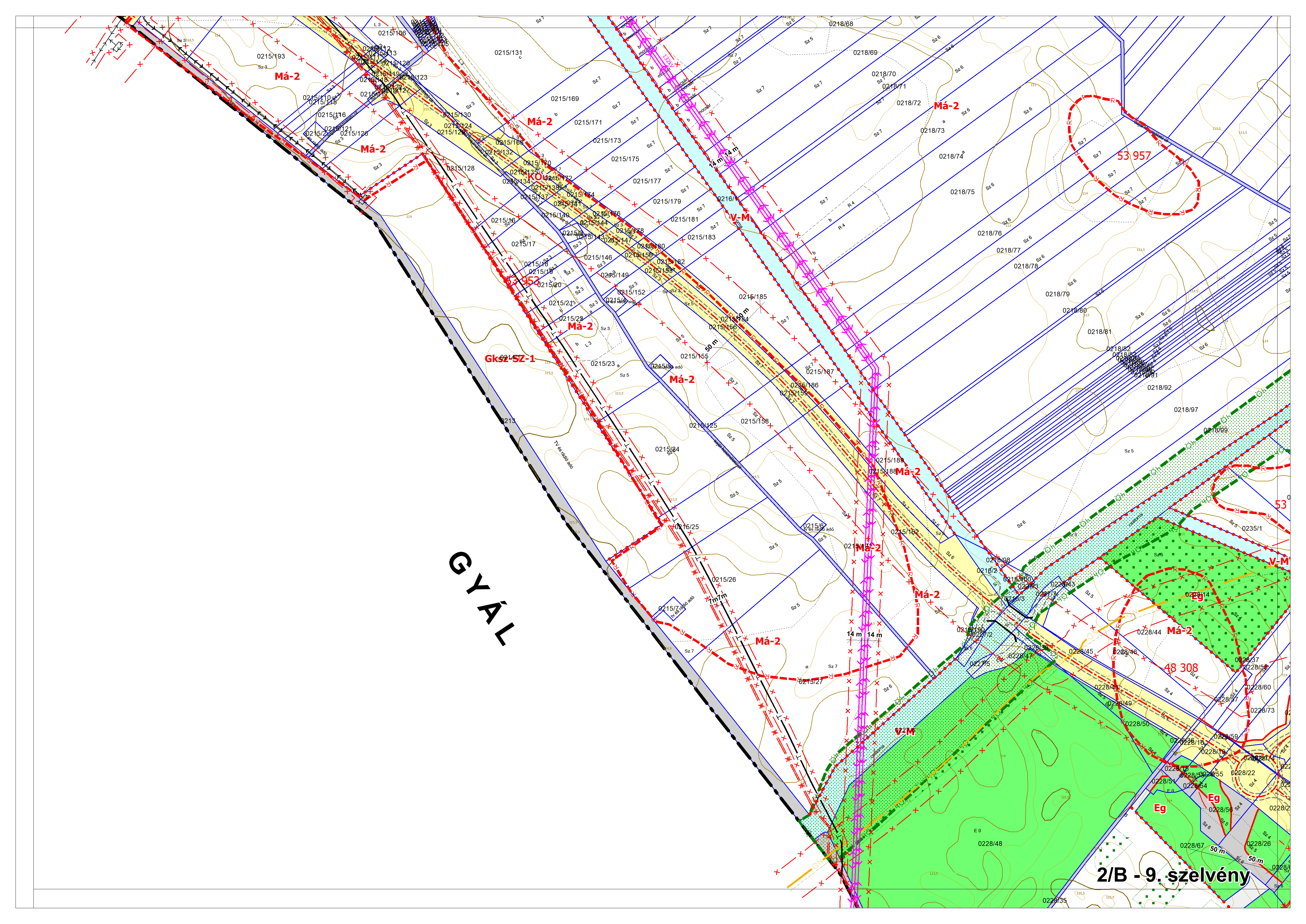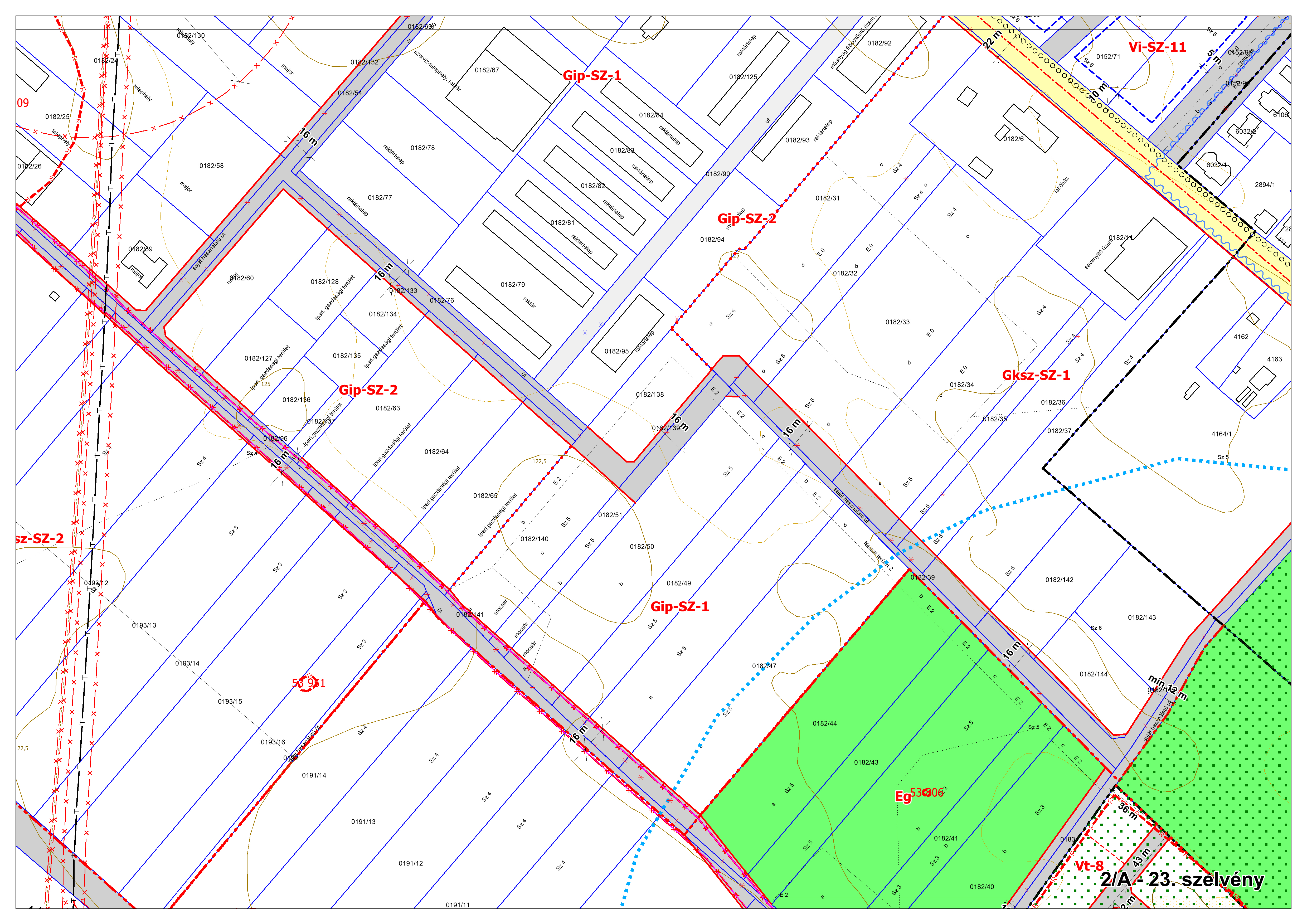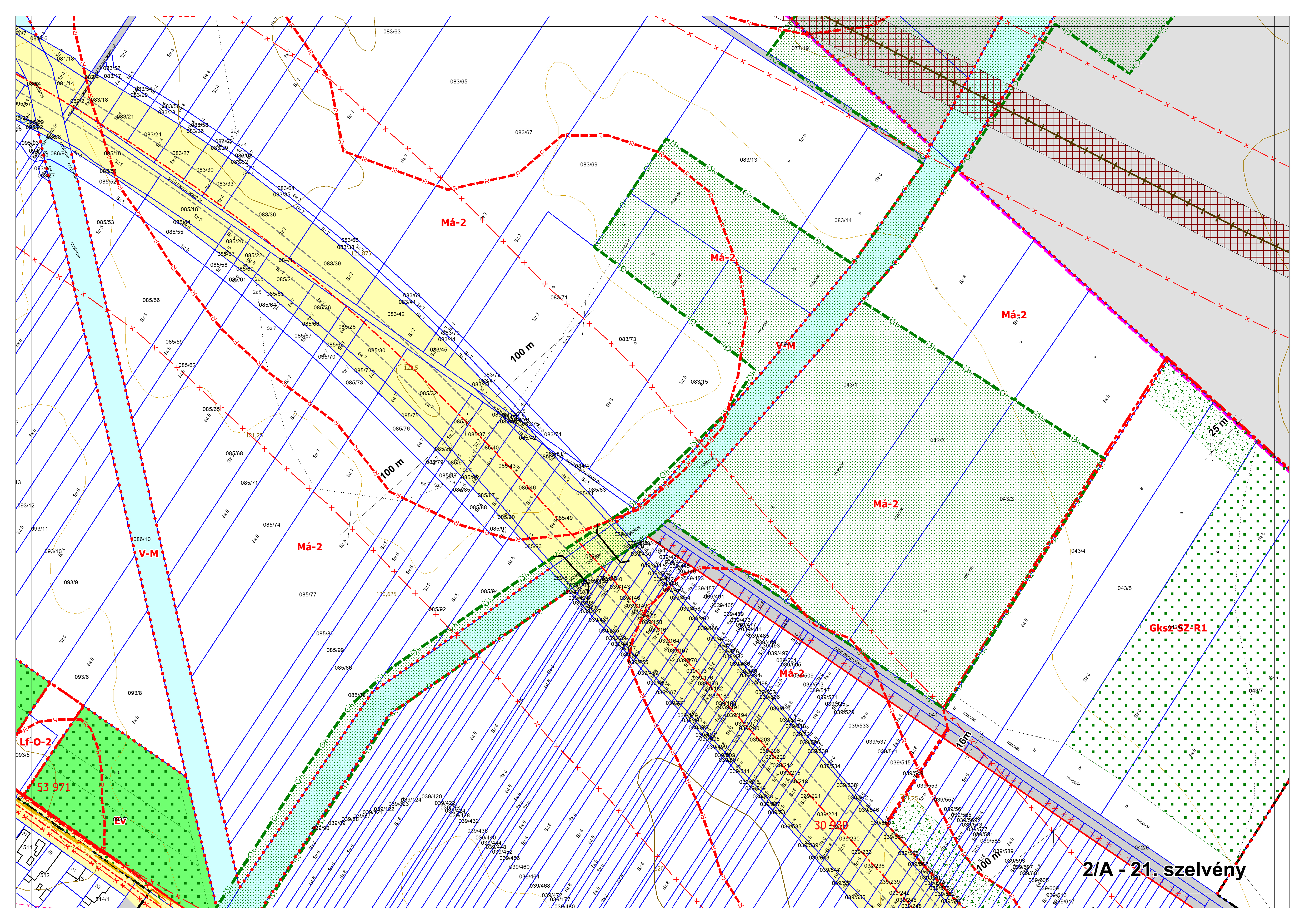 2/B. melléklet: a Szabályozási Terv jellemzően a külterületi szelvényei M=1:4000 méretarányban, 2/B-1.-től 2/B-16.-ig tartó sorszámozással